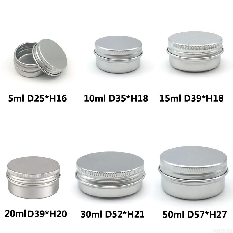 50Pcs пустая Серебряная алюминиевых банок консервные банки с резьбой Топ круглые свечи, емкости для хранения специй с завинчивающейся крышкой, магазин контейнеры 5g 10g 1 5g, 20 г, 30 г, 50 г