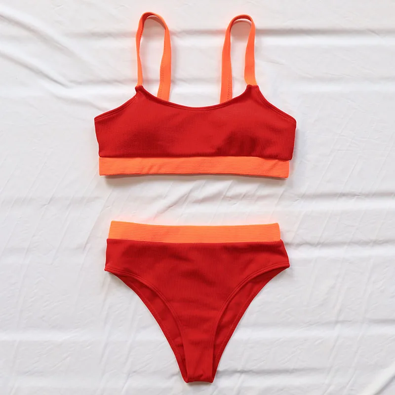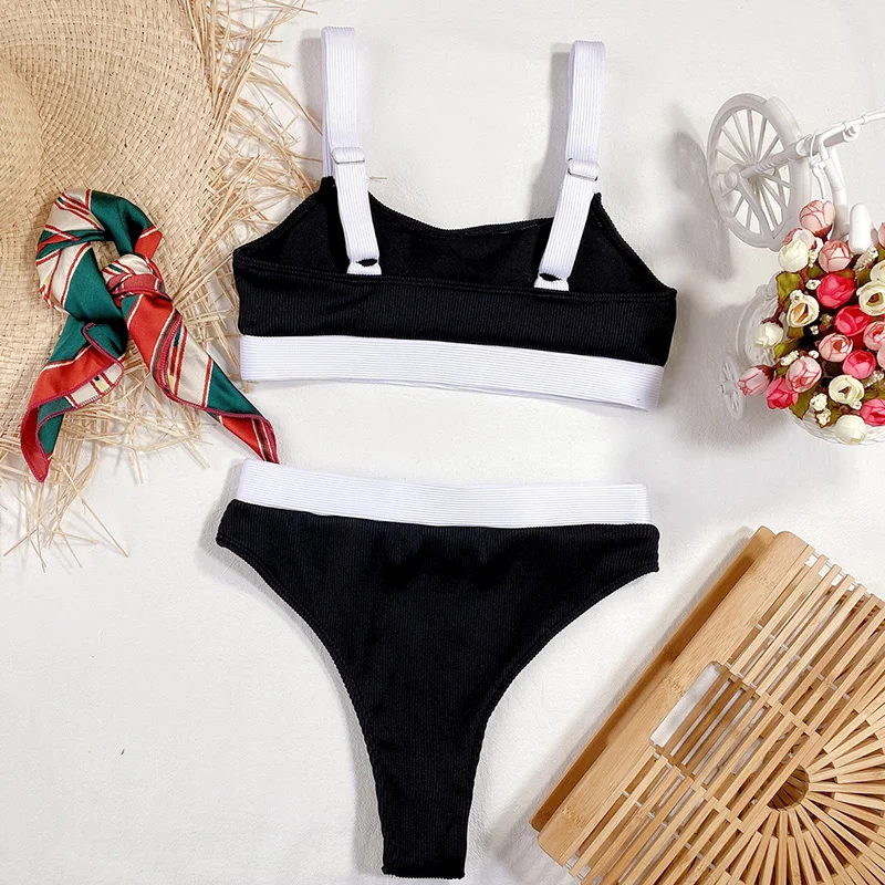 Женские Купальники 2021, бразильские бикини, купальник-бандо, бикини, пляжная одежда, спортивные ребристые купальные костюмы, Новинка