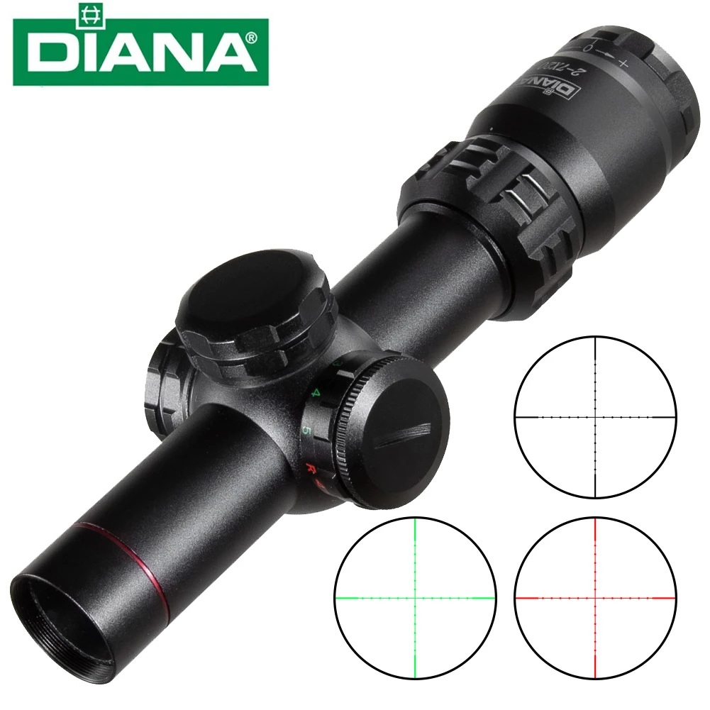 Охотничья тактическая оптическая прицел DIANA 2-7X20, зеленая, красная точсветильник вая пневматическая винтовка, Зрительная труба для винтовки, охоты, снайпера
