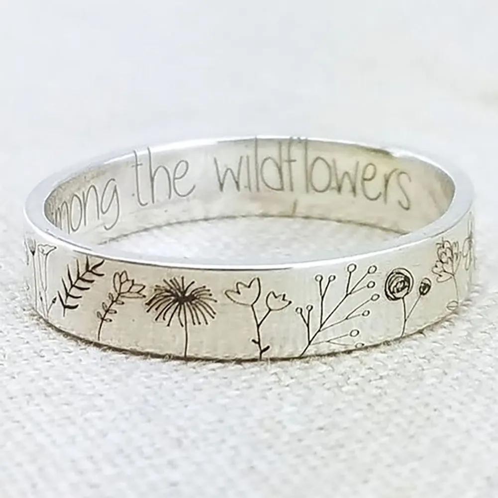 Кольцо женское, с дикими цветами, винтажное, с буквами, Ювелирное У...