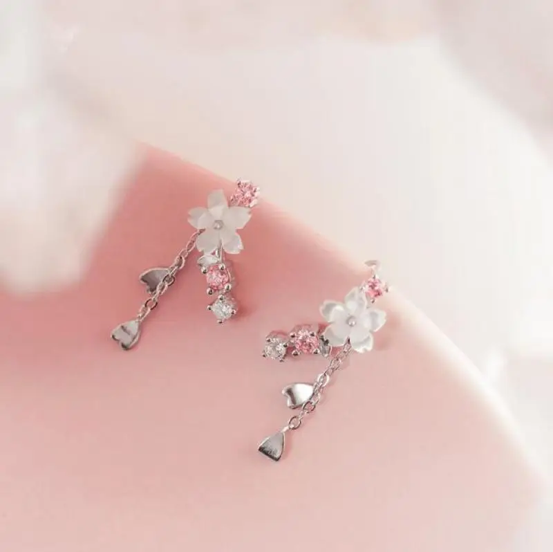Романтическая мода вишня в цвету цветок дизайн, серьги со шпилькой, для женщин, элегантные серьги в виде цветов, ювелирные изделия для помолвки, свадьбы