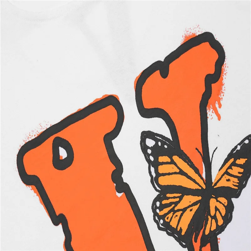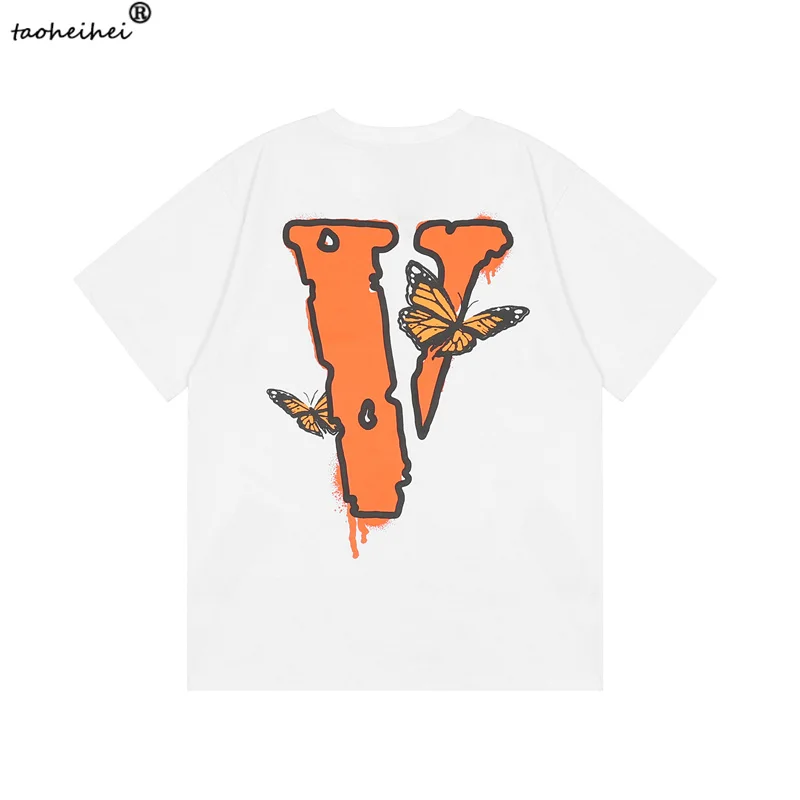 Новинка 2021 года, футболка VLONE с коротким рукавом и большим V-образным вырезом и принтом бабочки, футболка свободного покроя для мужчин и женщин
