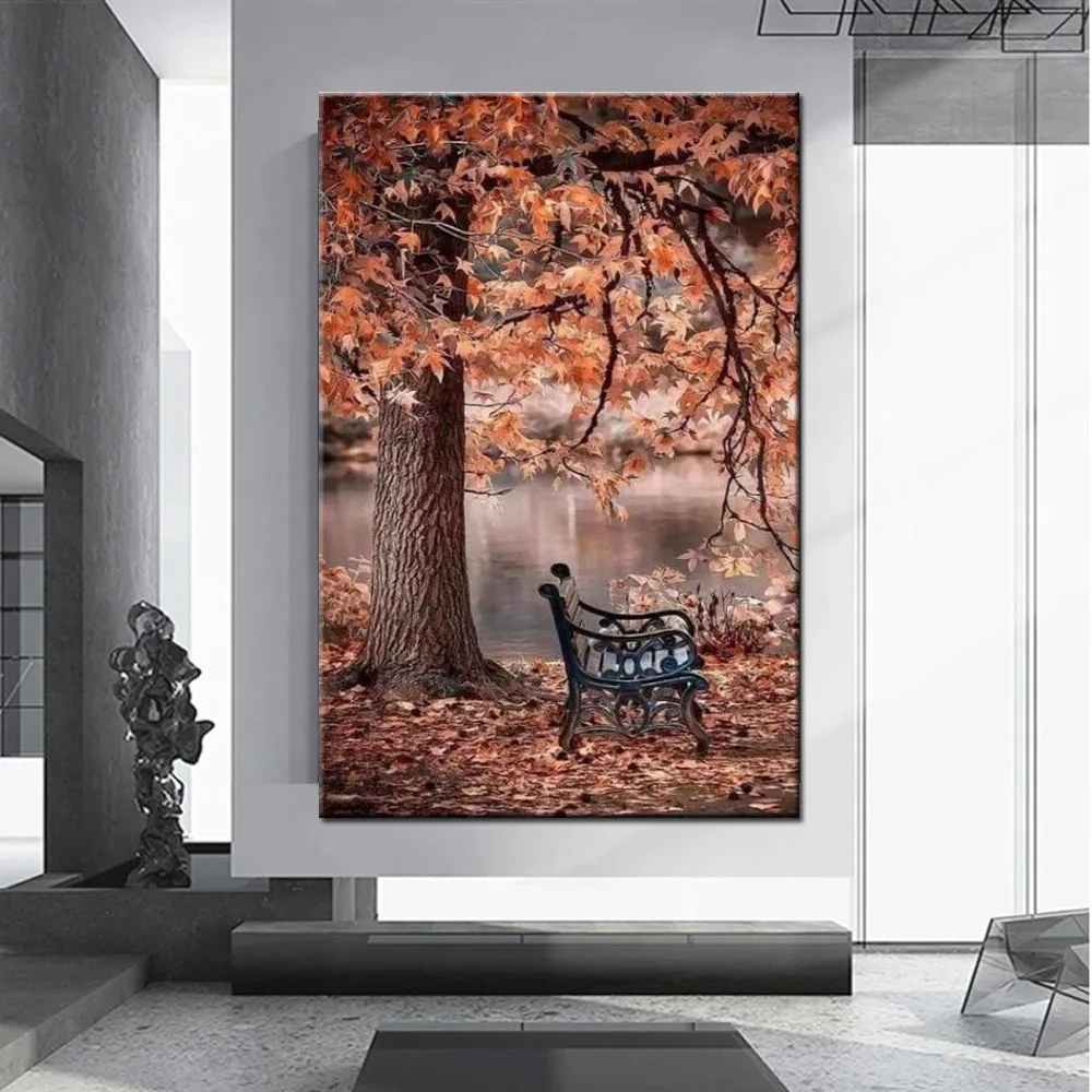 3D Алмазная картина, кленовый лист, алмазная вышивка, пейзаж, скамейка, вышивка крестом, осень, сделай сам, мозаика, картина, Полный алмаз, квадрат