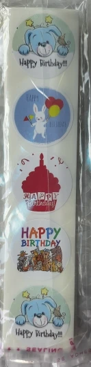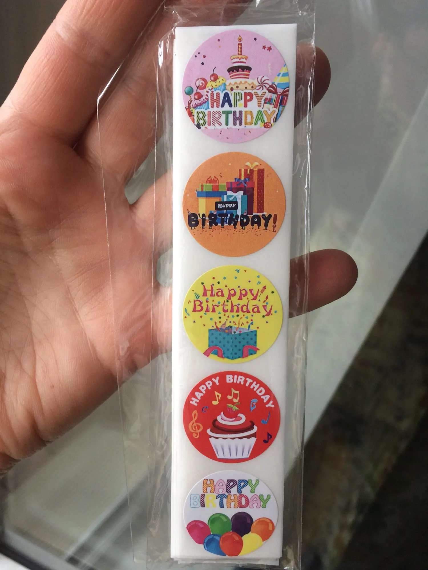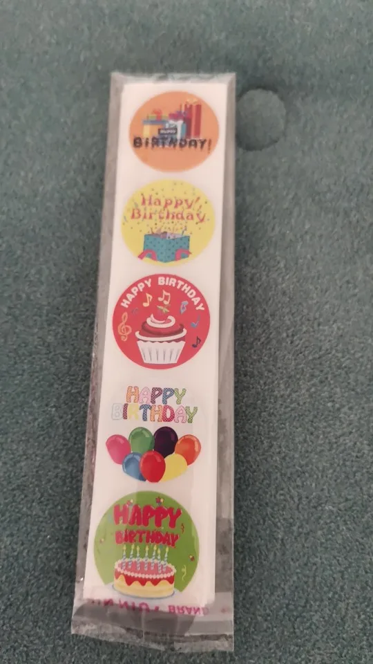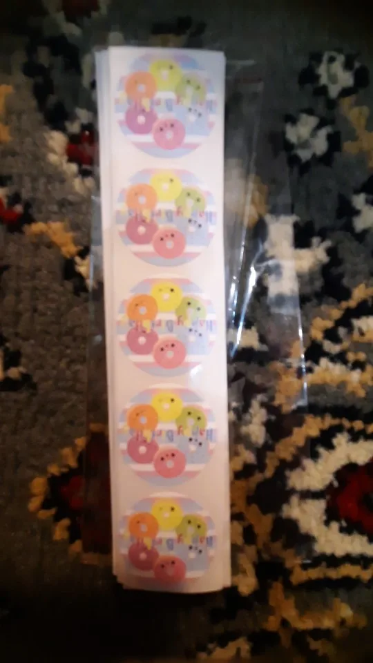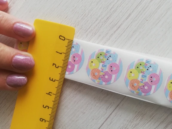 Соответствует описанию, только не в рулоне, а полоски сложены по пять наклеек. Яркие, красивые, рекомендую!