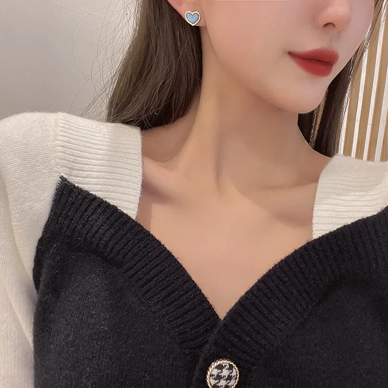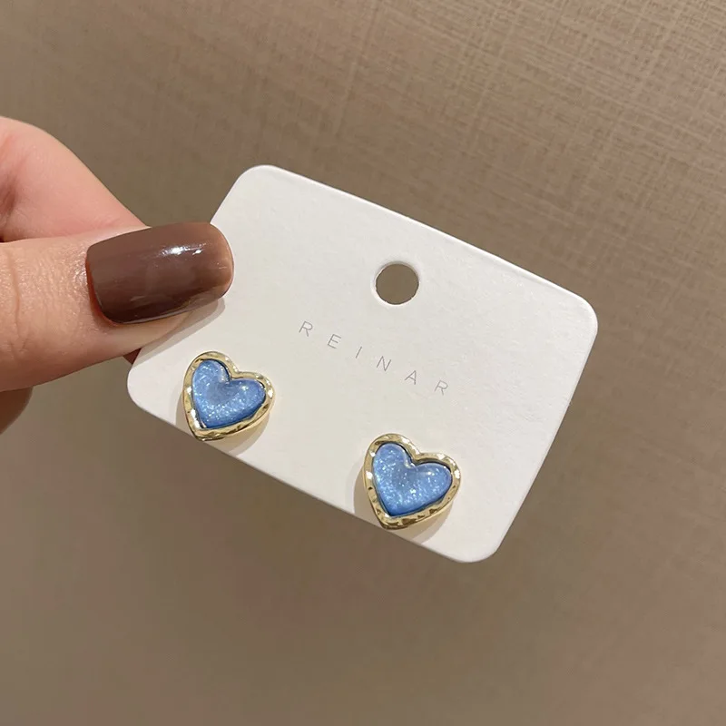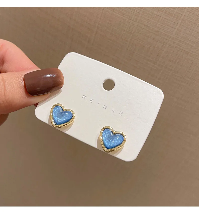 Серьги-гвоздики XIYANIKE с голубым сердцем, геометрические аксессуары для ушей из сплава, новинка 2021, для женщин и девушек, Модная бижутерия для вечеринки, подарок Oorbellen