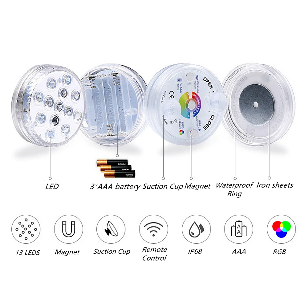 Подводный светодиодный светильник с дистанционным управлением, 13 светодиосветодиодный, магнитный, IP68, для бассейна, пруда, душа, ванны, вазы, подводсветильник лампа