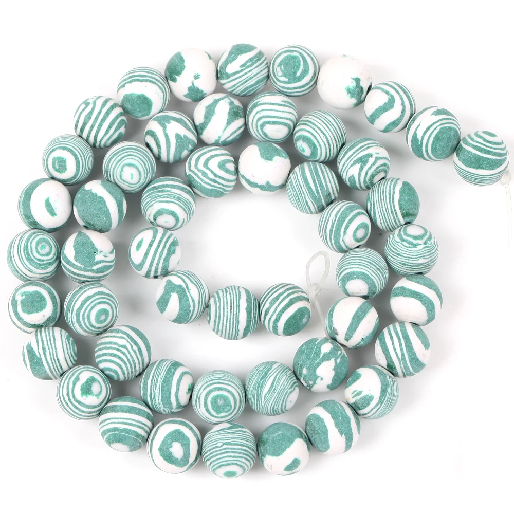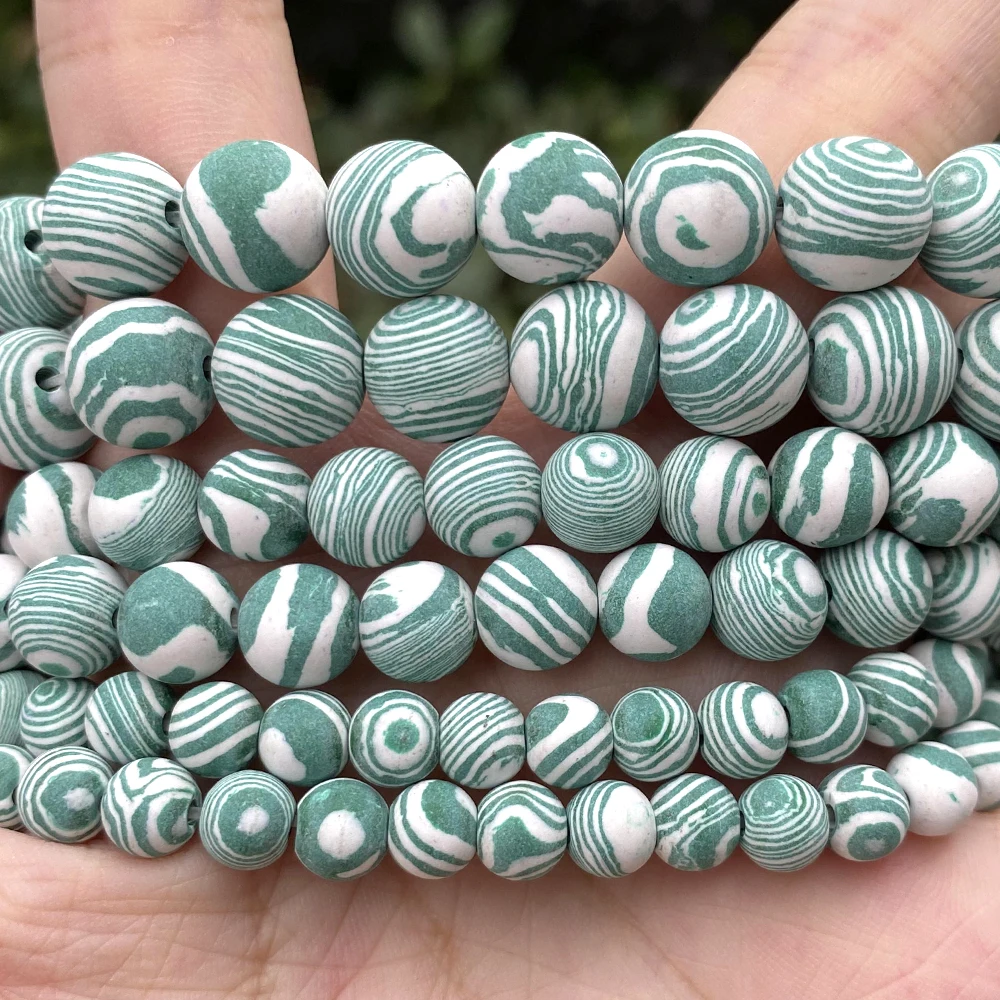 Тусклые полированные Зеленые Белые малахитовые бусины, круглые бусины для изготовления ювелирных изделий, 6/8/10 мм, разделители, свободные бусины «сделай сам», браслет, ожерелье