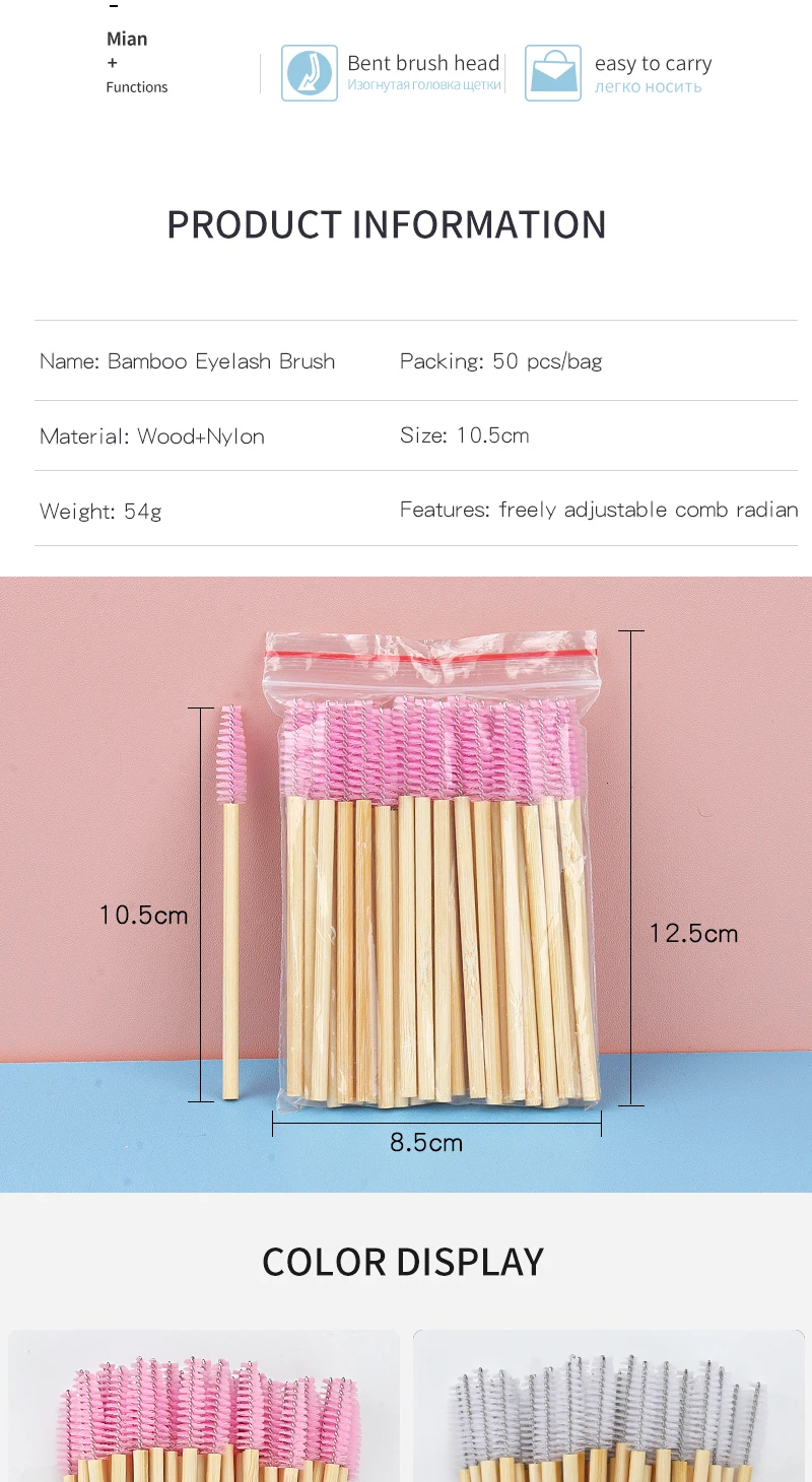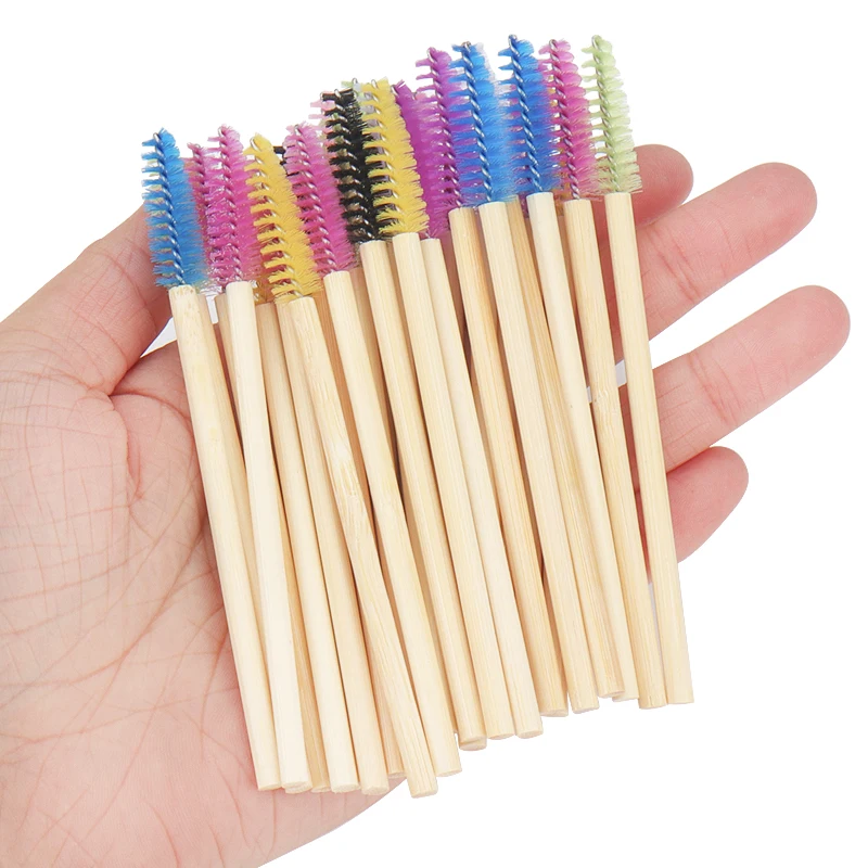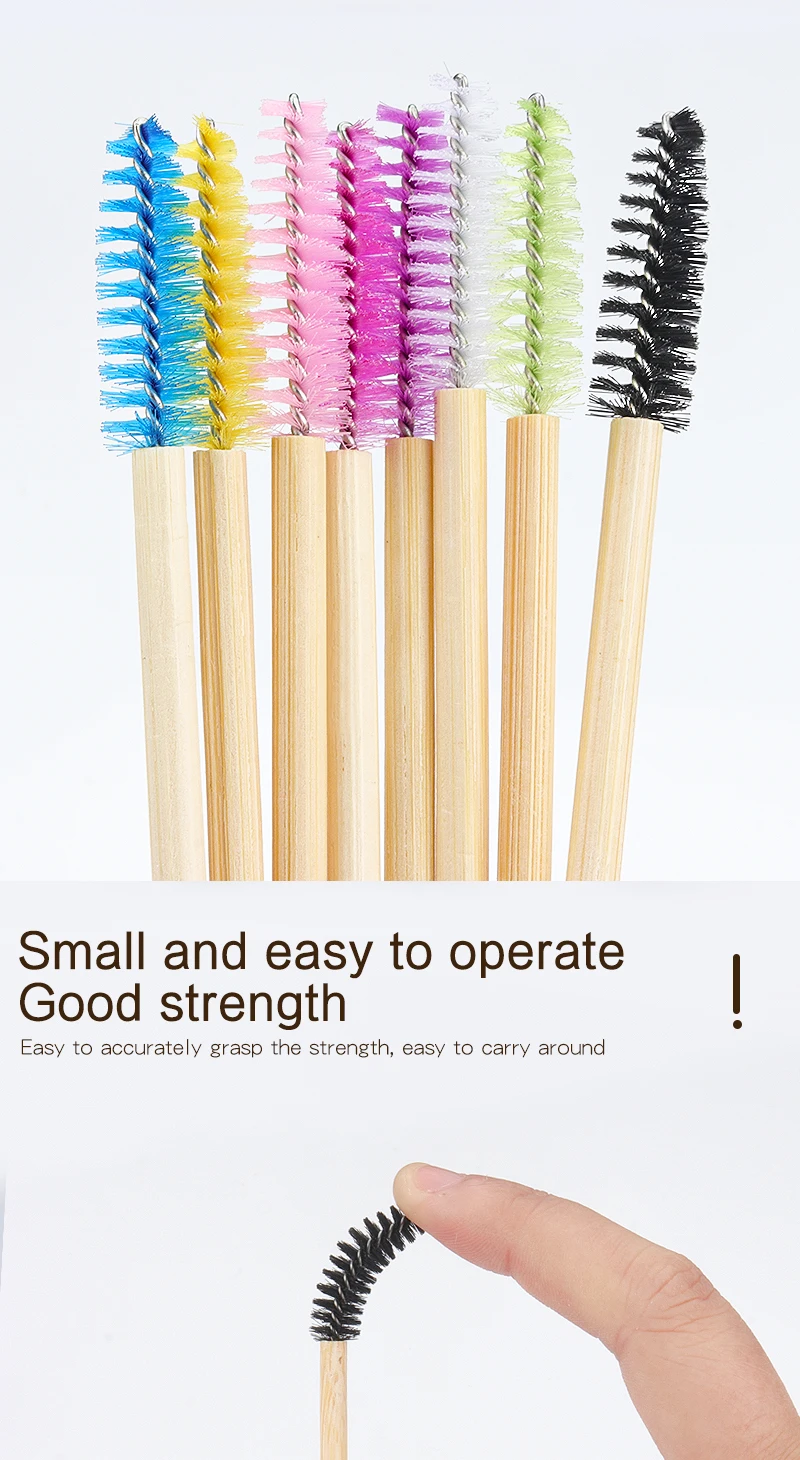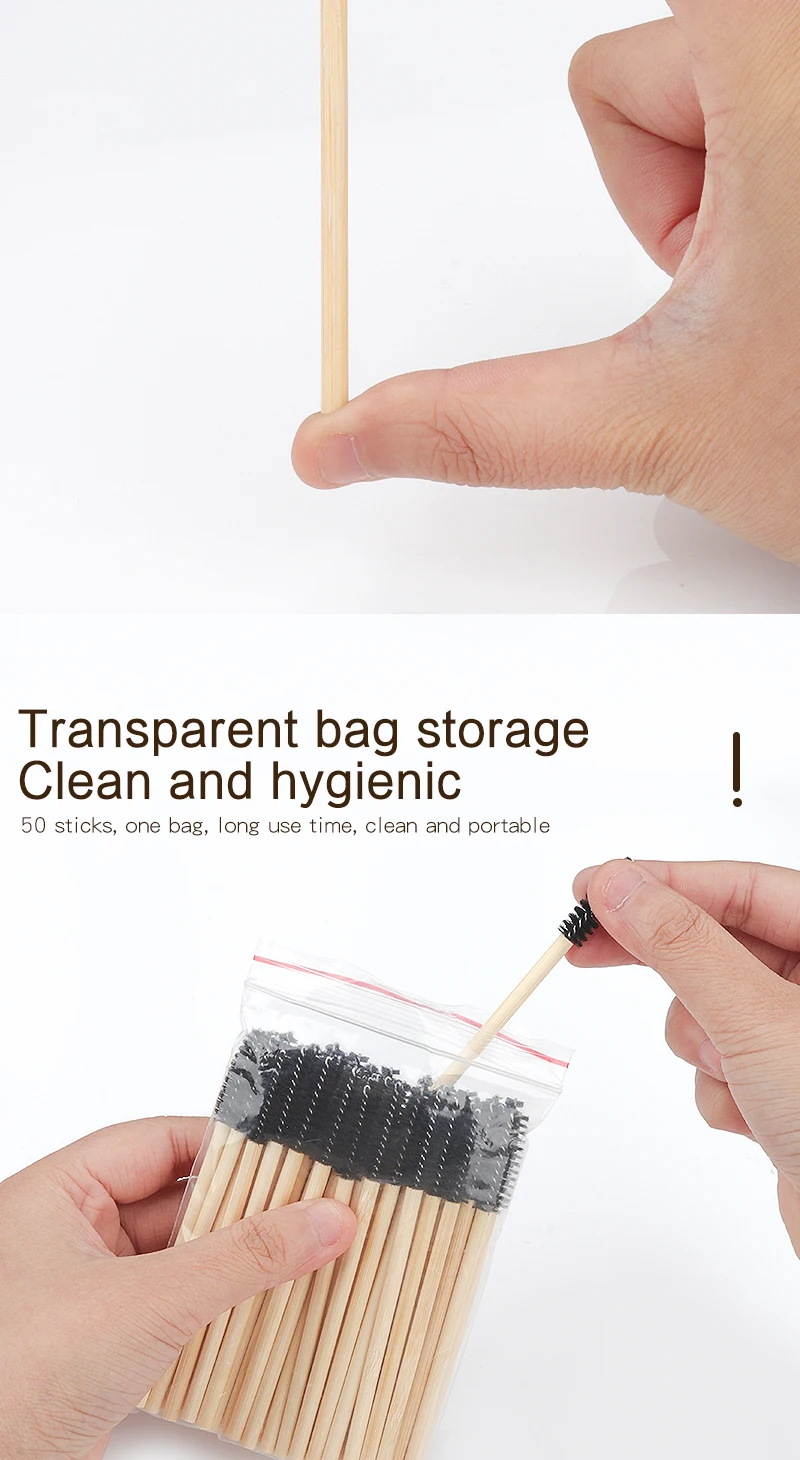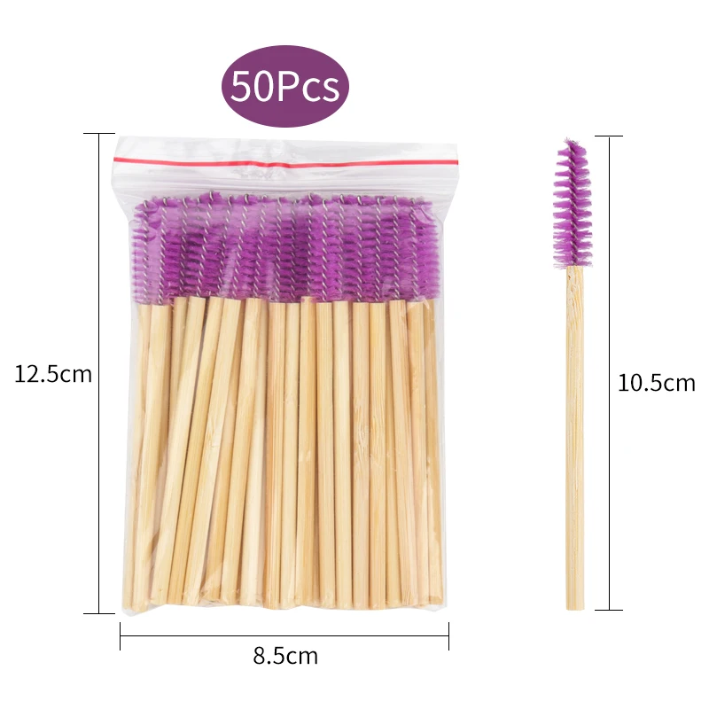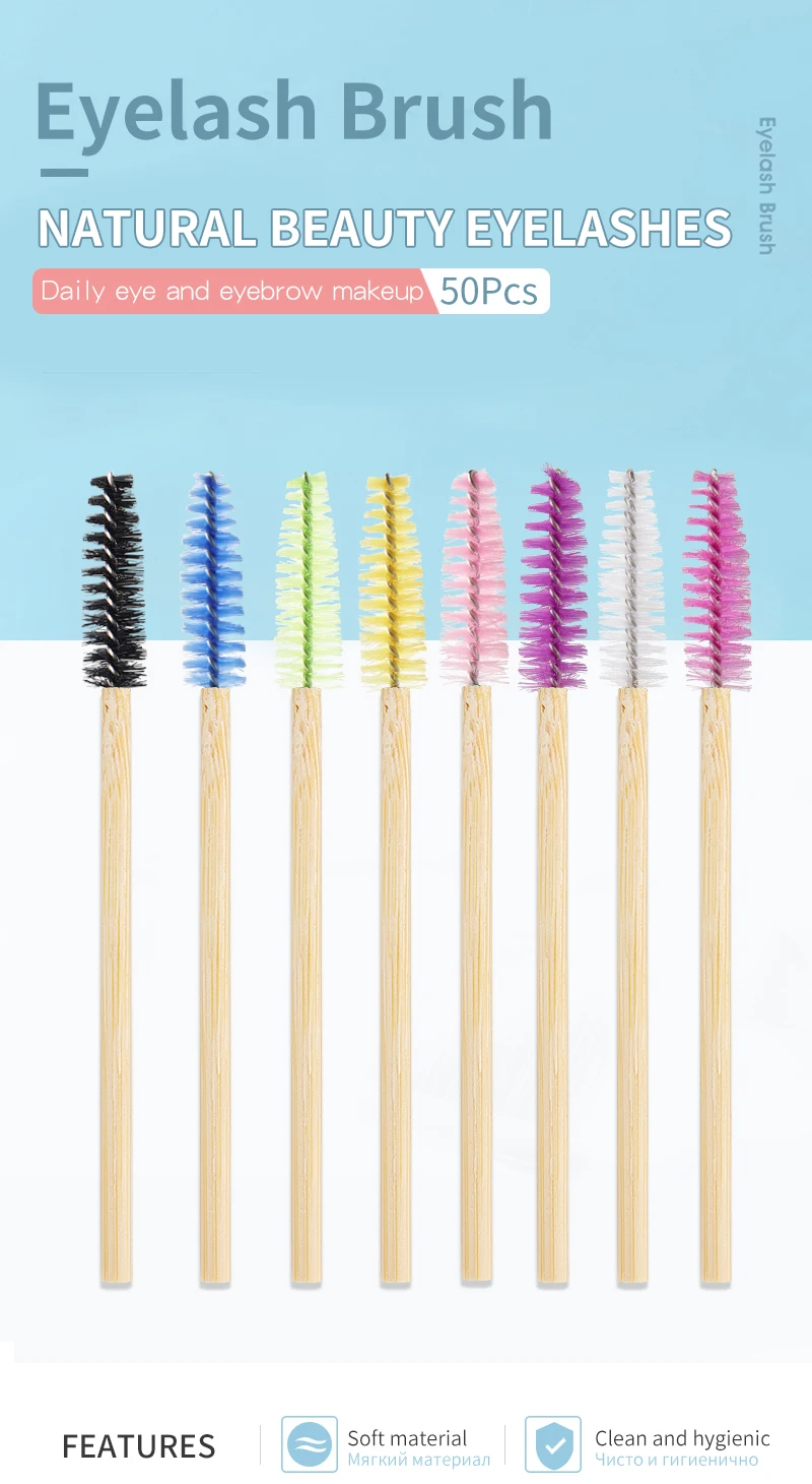50 шт., кисти для ресниц, одноразовые аппликаторы, щеточка для наращивания ресниц, принадлежности для макияжа, инструмент с бамбуковой ручкой, микро-кисть для бровей