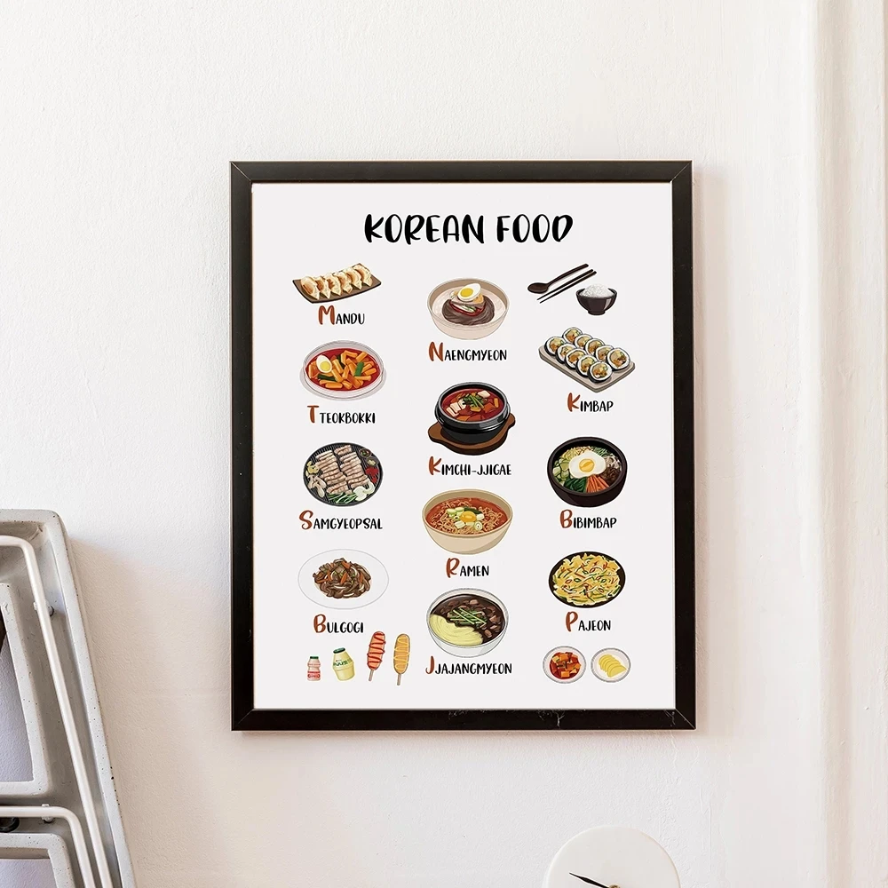 Современный мультяшный постер с изображением корейской еды, ресторана, манду, рамен, печать на холсте, картина кимбап, настенное искусство, картины для кухни, домашний декор