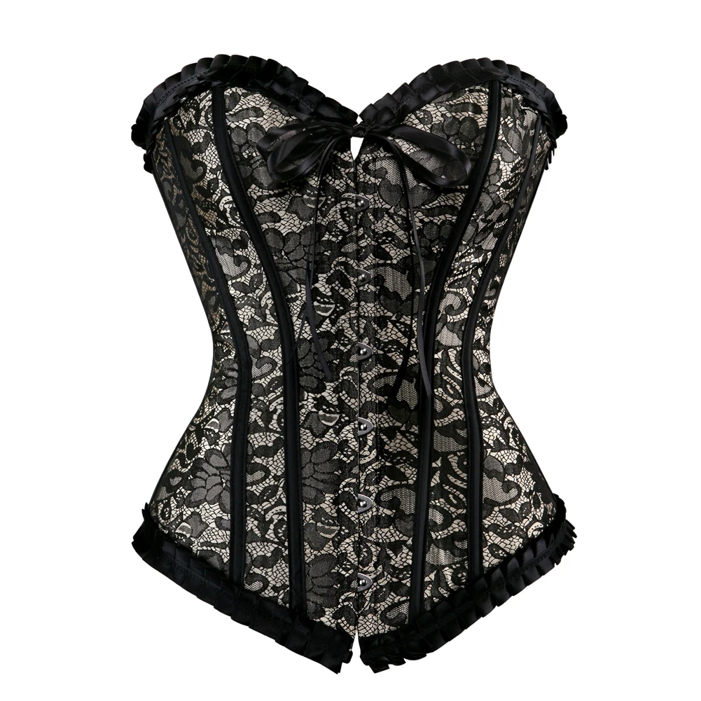 Сексуальный корсет Overbust Корсеты и бюстье в винтажном стиле, с цветочным принтом в викторианском стиле корсет-костюм белье Топ размера плюс для похудения корсет юбка пачка для женщин красные, черные