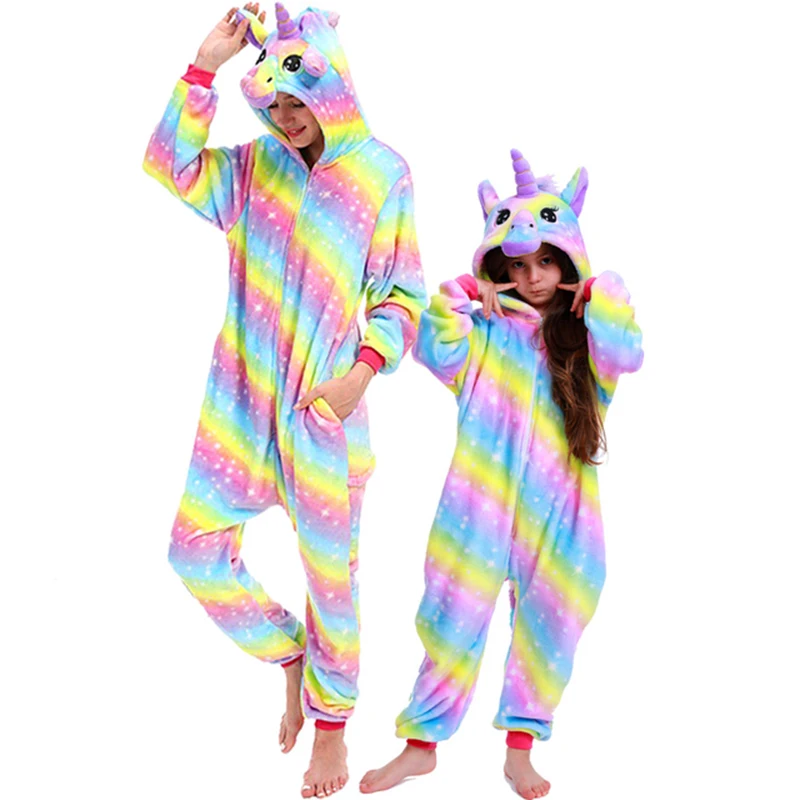 Цельный комбинезон с капюшоном для взрослых, милая пижама в виде панды, детская пижама в виде единорога, пижама в виде единорога, Комбинезоны для детей, рождественский подарок