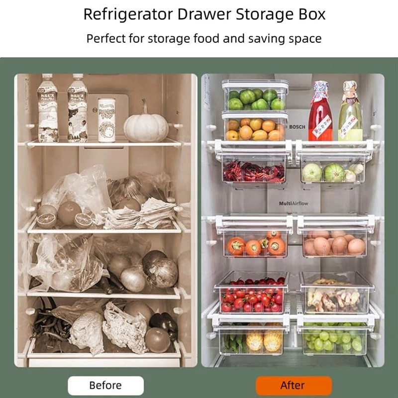 Ящик-органайзер для холодильника, 2 упаковки, для яиц, еды, фруктов, контейнер для хранения, прозрачный контейнер, выдвижной с ручкой