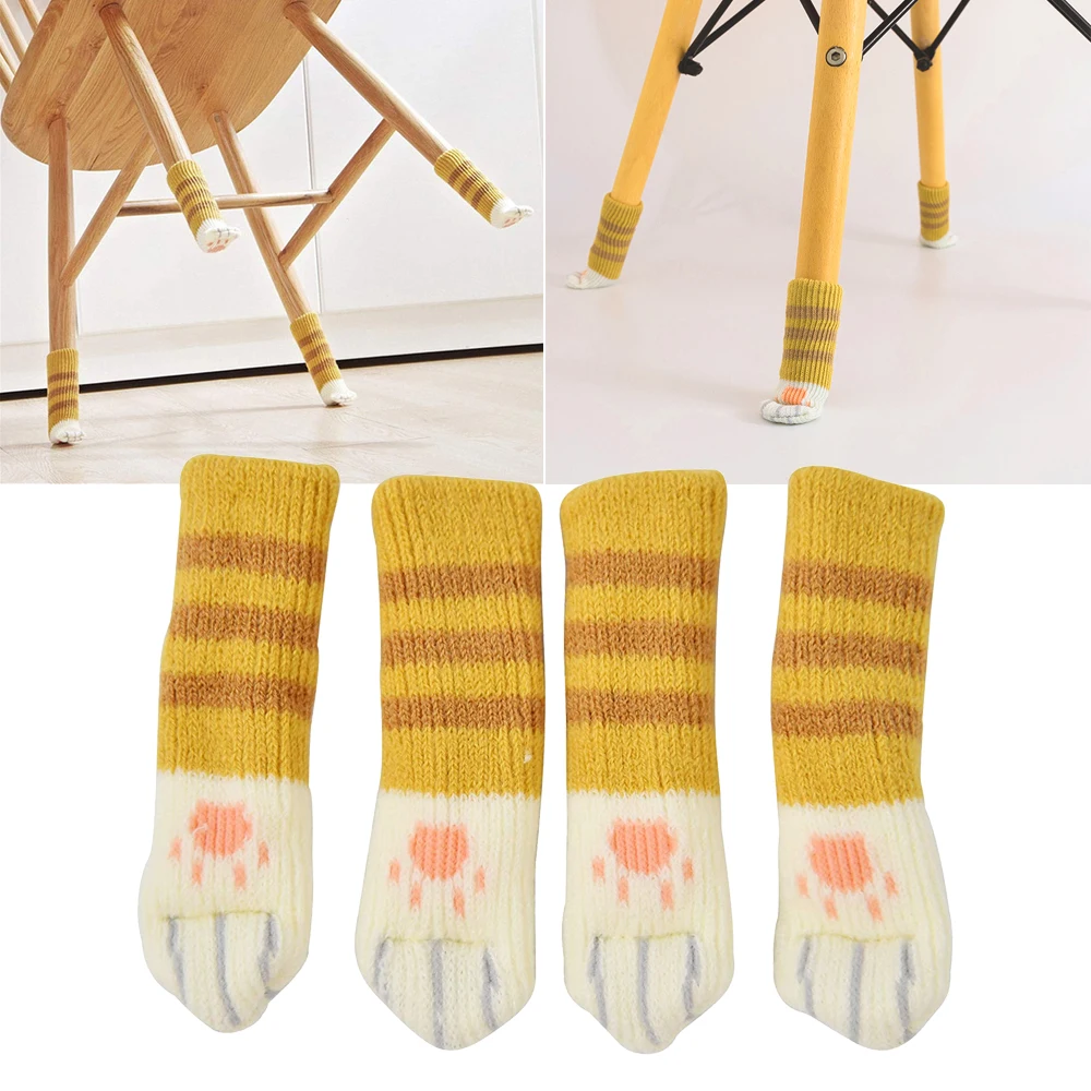 Комплект из 4 предметов вязаная эластичная обувь с принтом кошачий коготь вязать ножка стула чехлы защитные приспособления для пола стол ножка стола носки мебельные ножки передние тормозные колодки Fit периметр 6-17 см