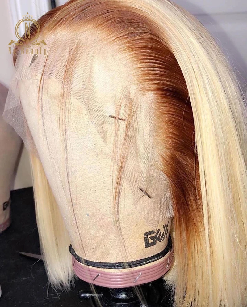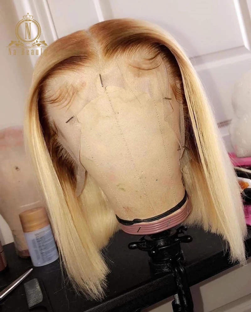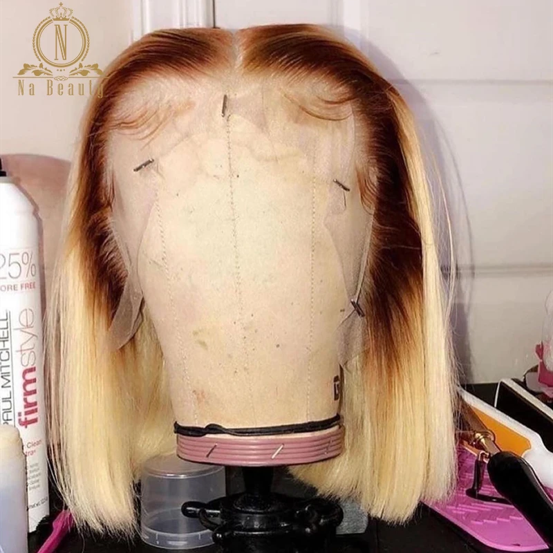 180 плотность блонд цвет 13x1 кружева фронта человеческих волос парики предварительно выщипанные блонд короткий боб парик с волосами младенца для черных женщин Nabeauty