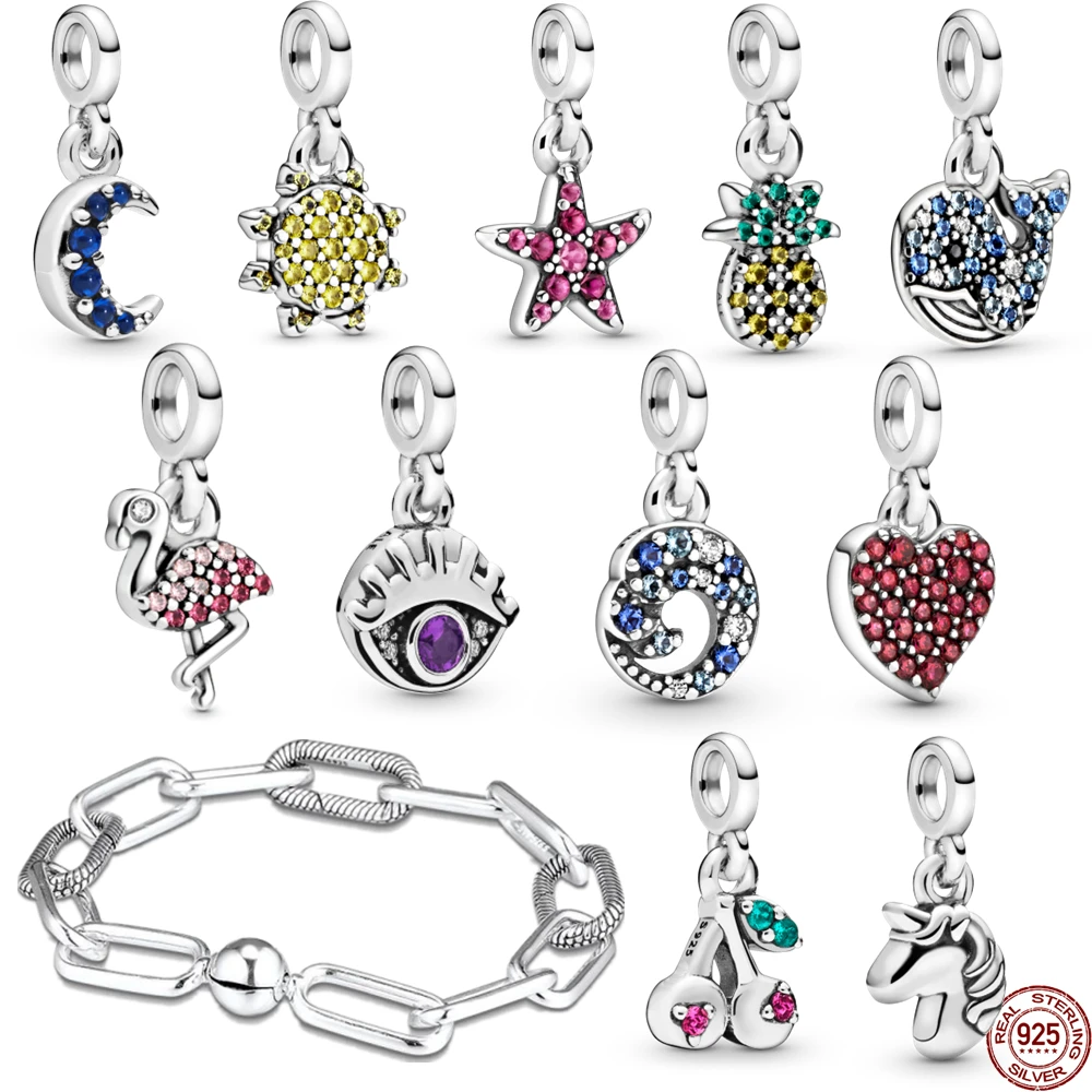 S925 стерлингового серебра Цвет Кулон Шарм бусина-подвеска, подходя...