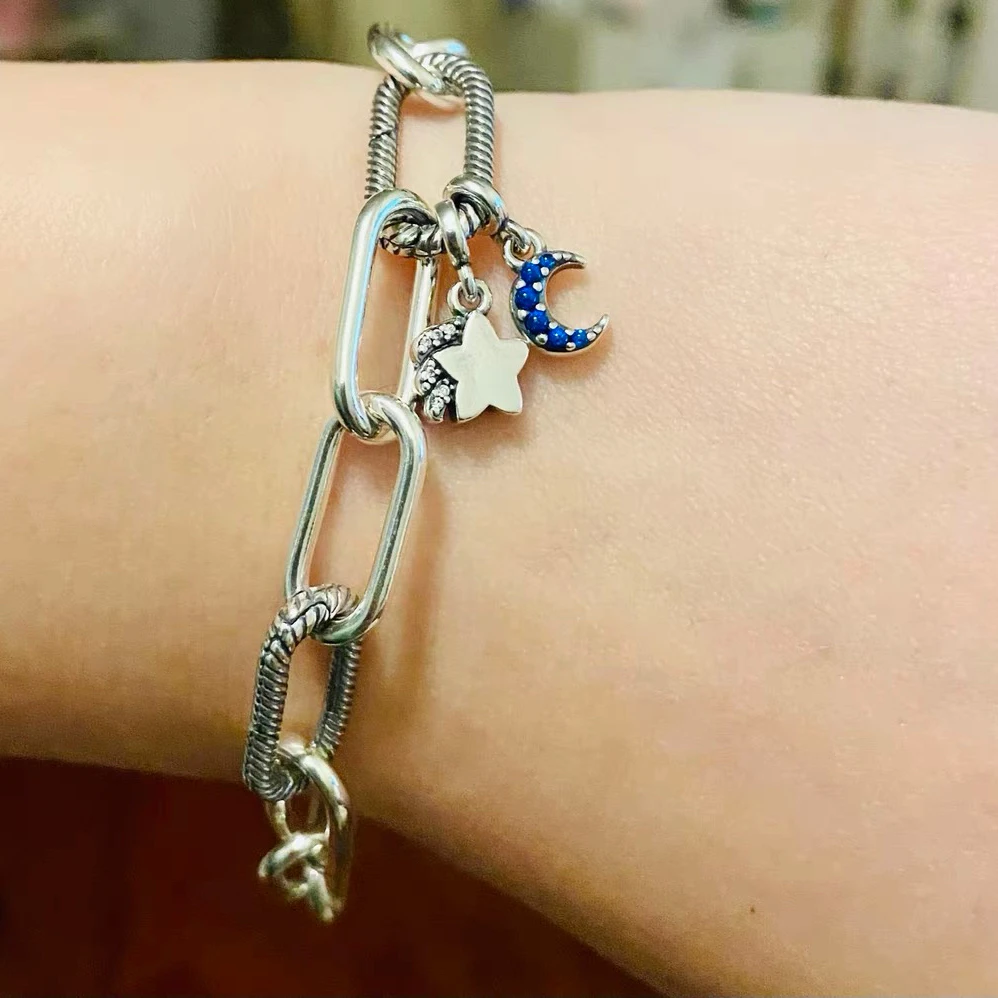 Женский браслет из серебра 100% пробы, с подвеской в виде звезд