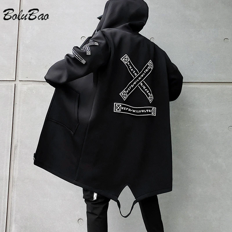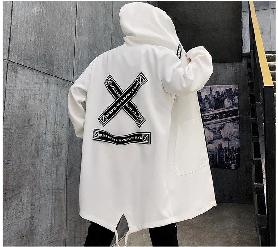 Мужской Тренч, модная уличная одежда с принтом, ветровка с капюшоно...