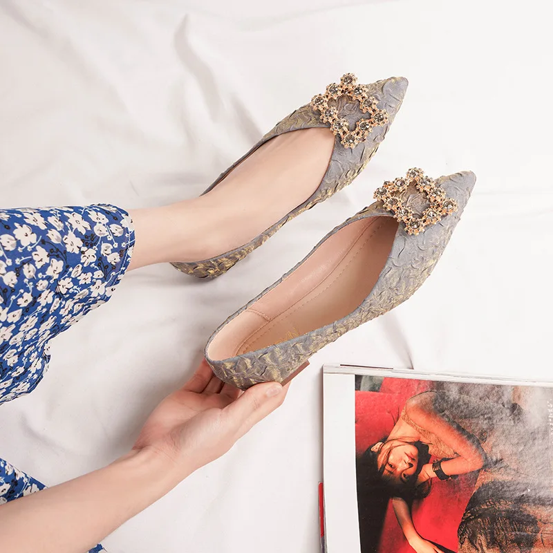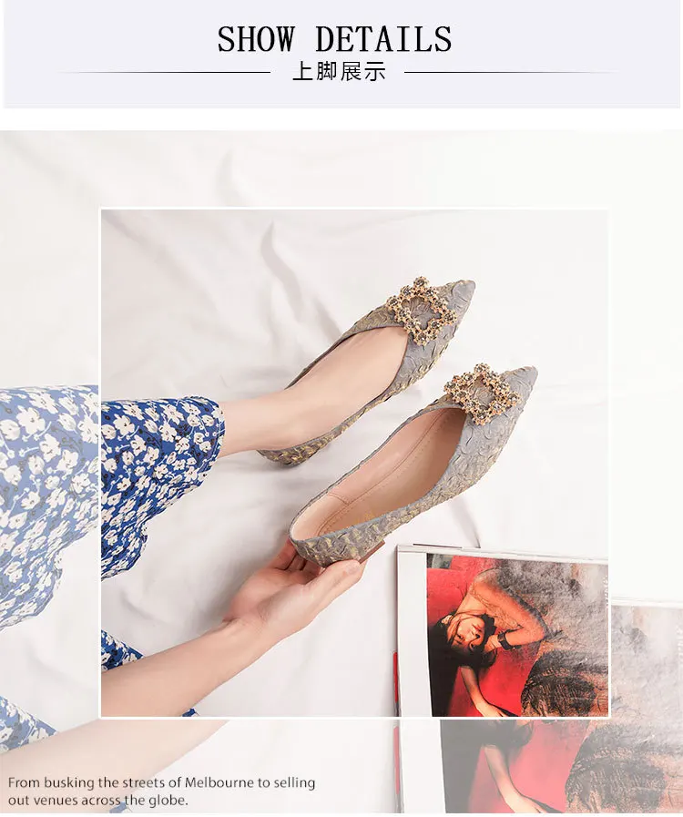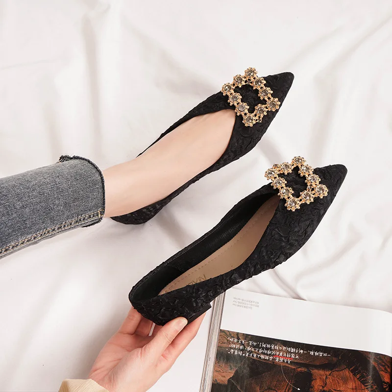 Женские туфли с квадратной пряжкой, с острым носком, с кристаллами,...