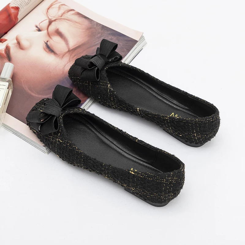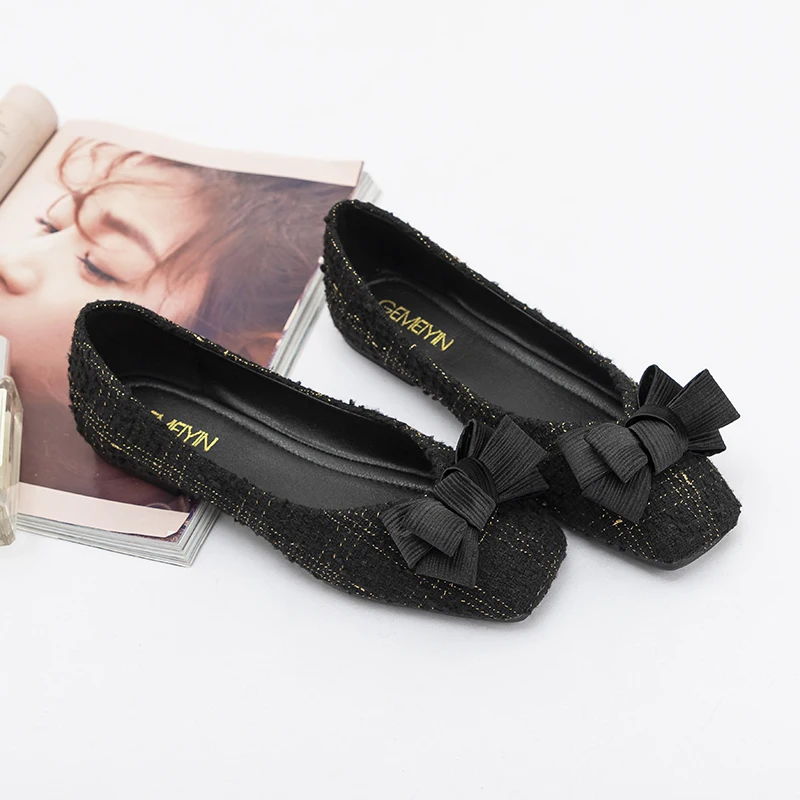 Туфли на плоской подошве с квадратным носком; Женские лоферы без за...