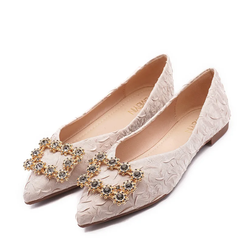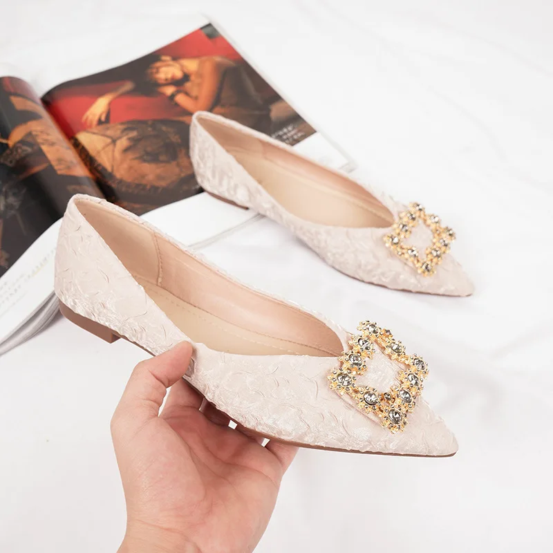 Свадебные туфли; Женские туфли на плоской подошве с закрытым острым...