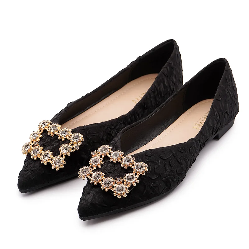 Черная атласная ткань обувь на плоской подошве; Лаконичные женские туфли, расшитые блестками, стразы с украшением в виде кристаллов с прозрачными стразами и молнией модные туфли на плоской подошве; Обувь для невесты; Для работы; Удобная женская обувь