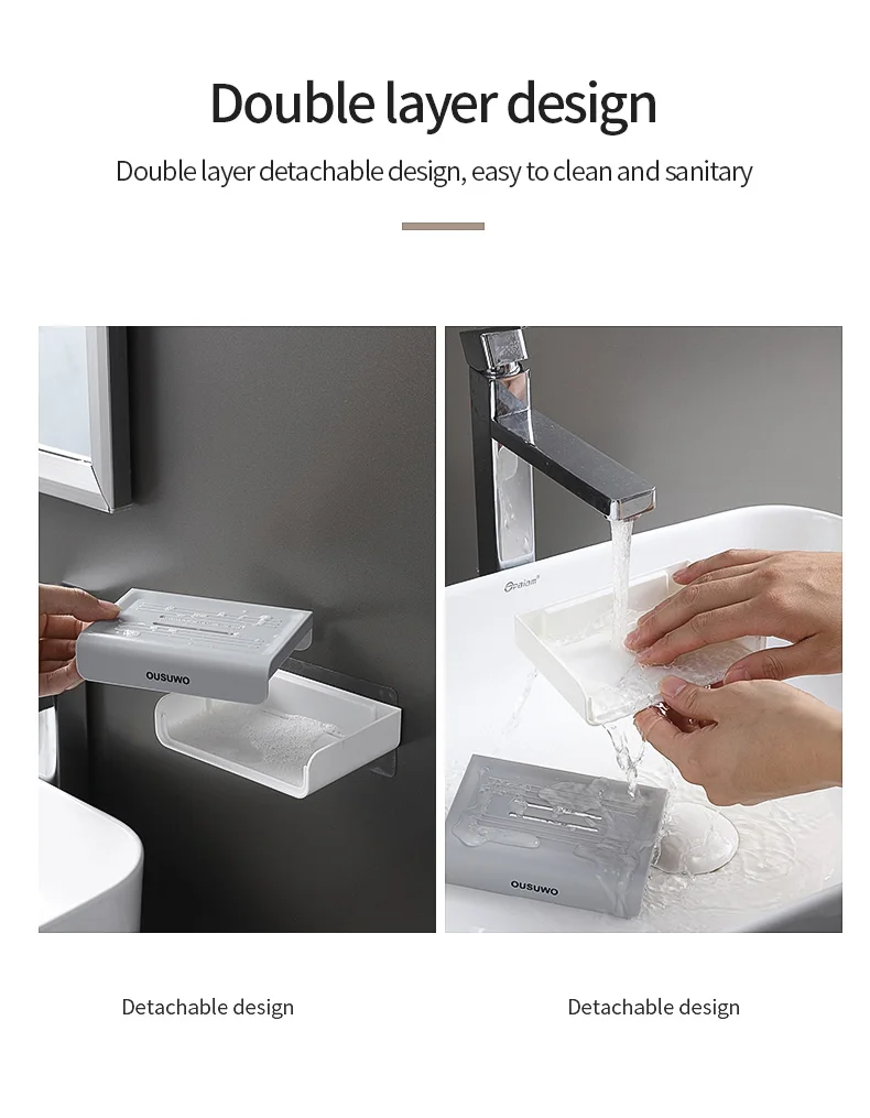 Мыльница присоска настенная креативная сливная стойка для дома столешница двухслойная ванная комната не перфорированный держатель для мыла