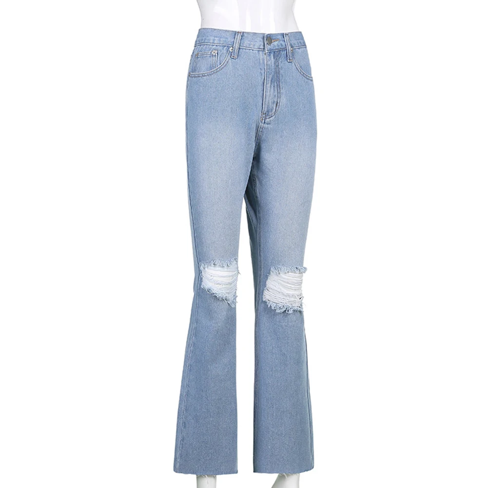 Джинсы женские рваные в стиле Харадзюку, Модные расклешенные брюки ...