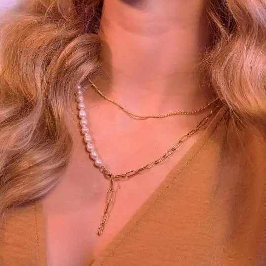 Тип изделия: ожерелье из натурального жемчугаТип ожерелья: цепочка в коробкеПол: женщинТип цепи: коробка цепьМатериал: нержавеющая стальСтиль: Модный