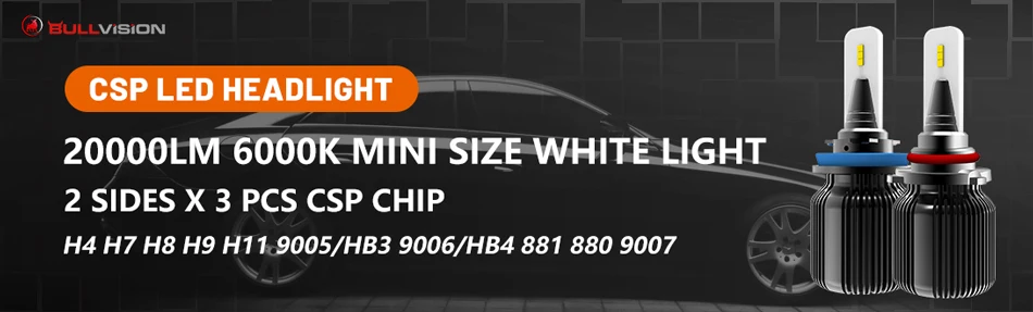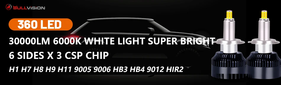 (1) светодиодная фара 20000LM/пара, каждая лампа 10000lm, супер яркая.(2) один светильник имеет 6 сторон 72 шт CSP чипы, 360 градусов светильник ing.(3) Этот продукт 6000k, чисто белый светильник.(4) Мощность этого продукта составляет 90 Вт/пара, каждая лампа-45 Вт.
