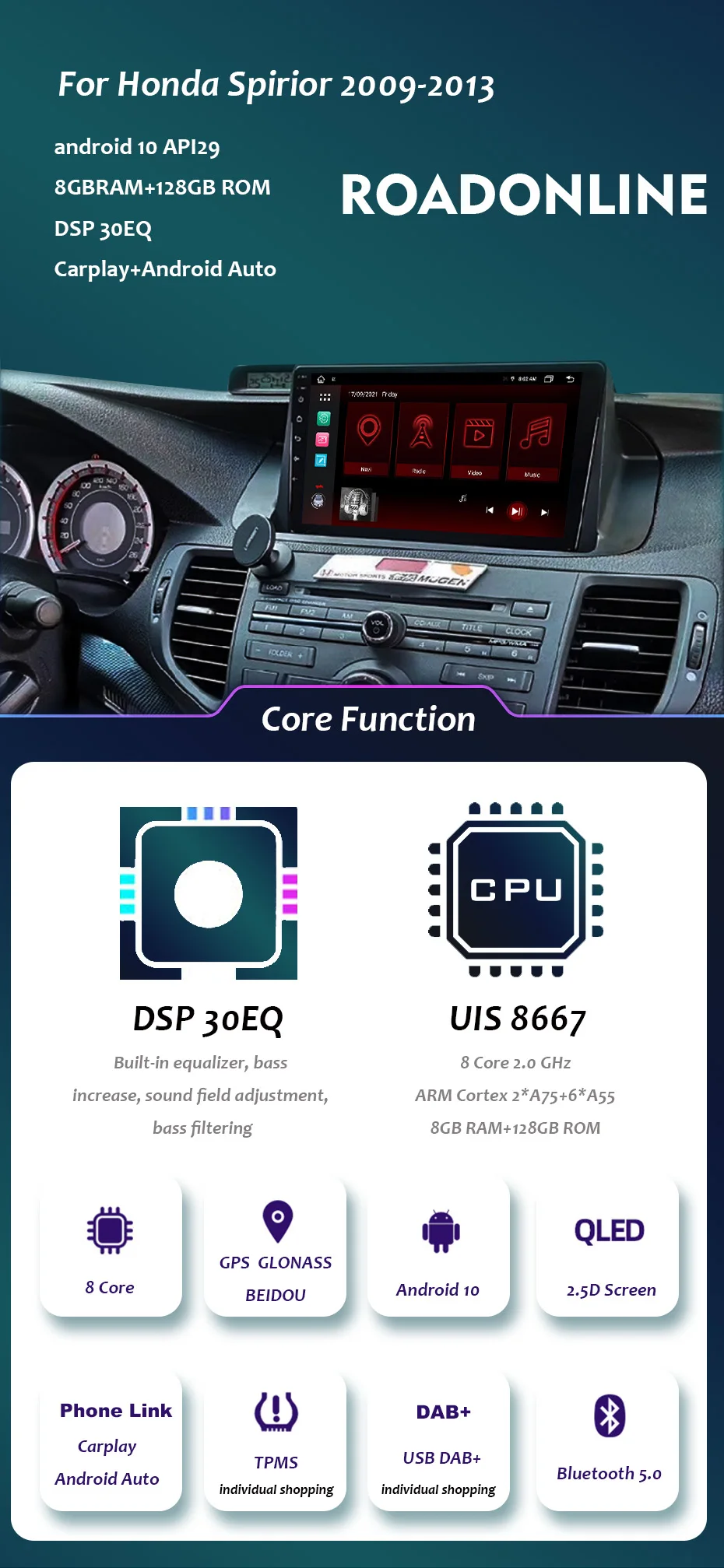 8 + 256 ГБ Android-навигация для Honda Accord 8 Spirior 2009-2013 автомобильное радио мультимедийный видеоплеер Стерео GPS камера заднего вида
