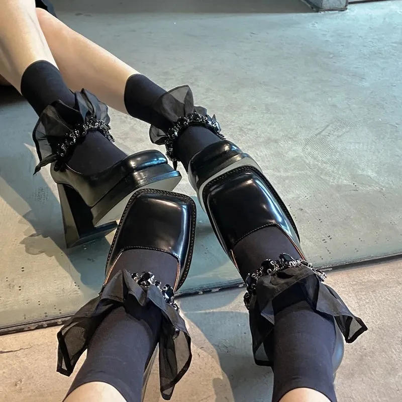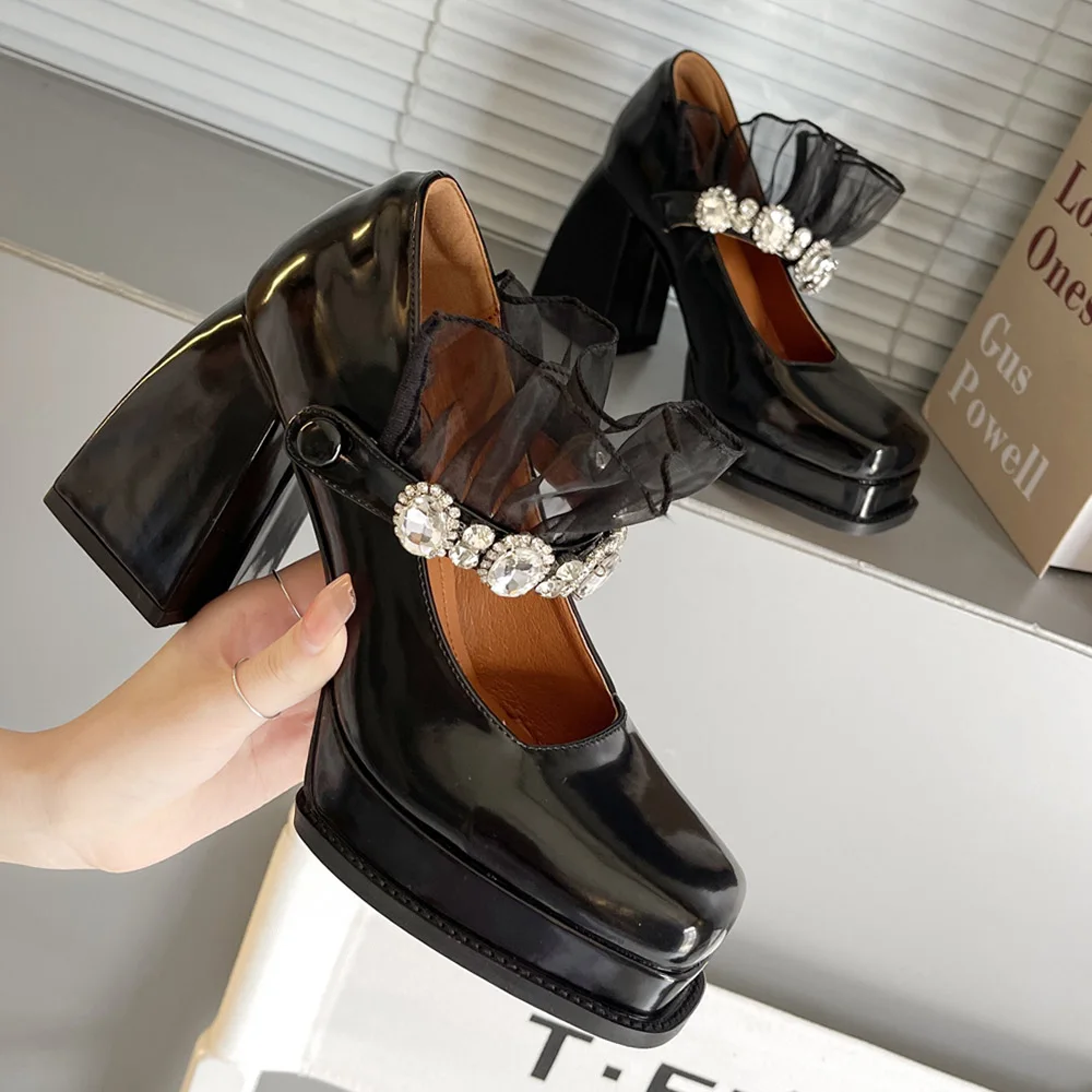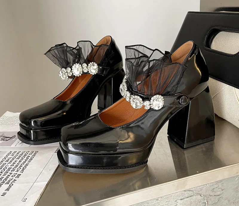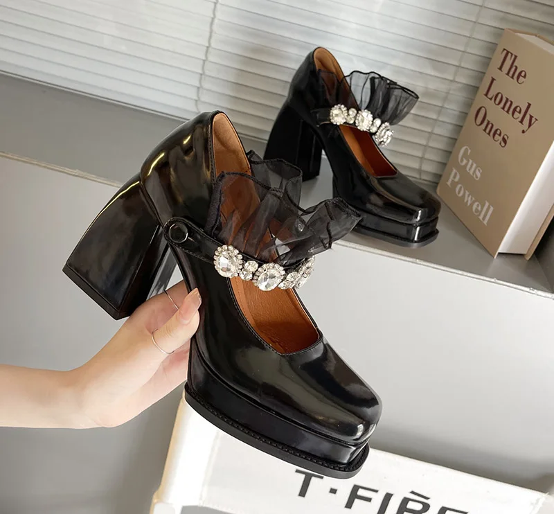 Женские брендовые офисные туфли-лодочки INS с квадратным носком и пряжкой на ремешках на платформе и блочном каблуке, элегантные готические женские туфли на лето 2022, вечерняя Обувь