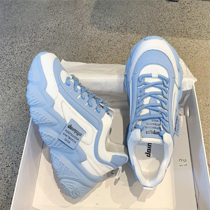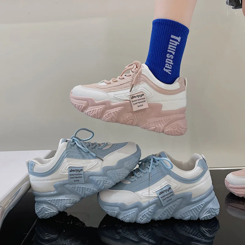 Женские кроссовки на платформе, кожаные кроссовки на толстой подошве, повседневная спортивная обувь для бега, новинка весны 2022