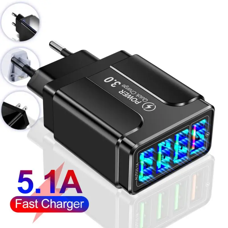 5.1A QC3.0 4USB быстрой зарядки нескольких порт Мобильный телефон зарядное устройство для IPhone, Samsung, Huawei, планшетов мобильный телефон для быстрой зарядки с usb-портом зарядного устройства
