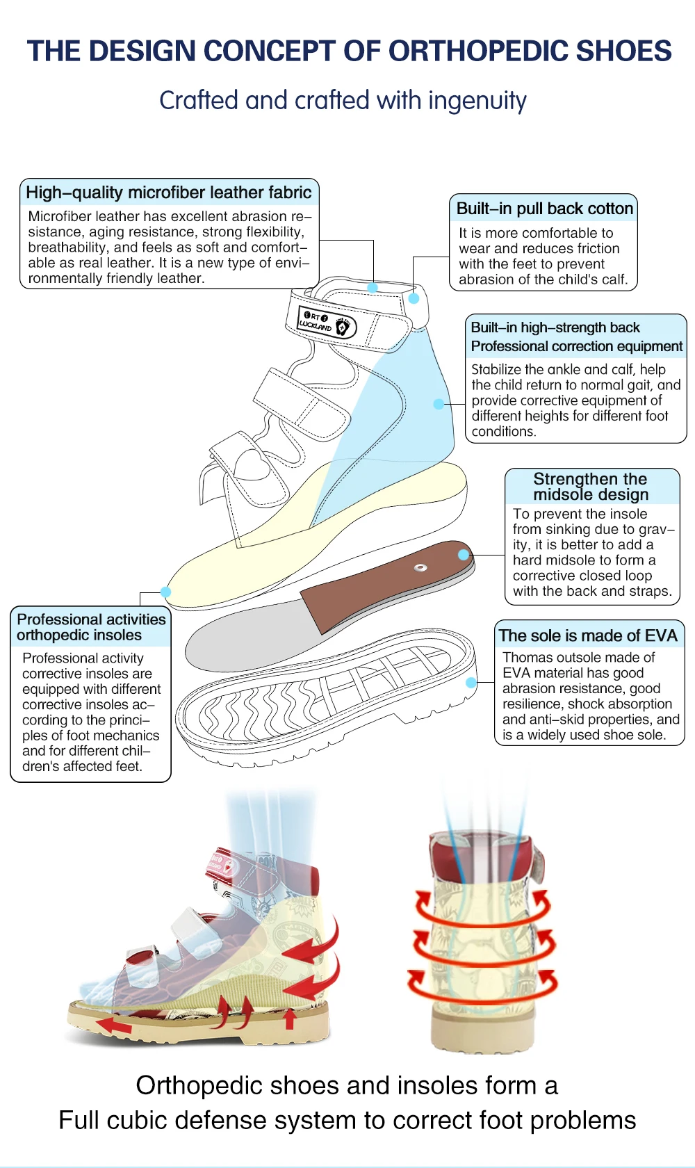 Может защитить стопу сустава и исправить деформацию ног, чтобы помочь здоровому росту суставов ног детей.> 2. Каковы особенности ортопедической обуви?1) прочные и прочные удлиненные задние колпачки стабилизируют стопу в правильном положении.2) мягкие внутренние воротники обеспечивают гладкий контакт кожи с краями обуви во время движения.3) Арка поддержки стельки и Томас пятки подошвы, чтобы дать поддержку стопы.4) застежка на липучке плотно фиксирует ноги внутри обуви> 3. Каковы функции ортопедической обуви?Для профилактики и лечения ортопедических аномалий.