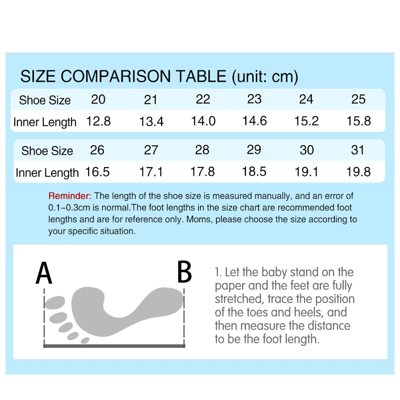 Чтобы измерить его от самого длинного пальца ноги до пятки стопы, как на фото выше.2) Пожалуйста, выберите размер в соответствии с длиной стельки вашей текущей обуви.Или измерить длину голой стопы, затем добавить 1 см пространства, чтобы выбрать размер.3) Пожалуйста, обратите внимание: так как мерки снимаются вручную отклонение возможно, использует другие методы 0,1-0,5 см. Это в нормальном состоянии.