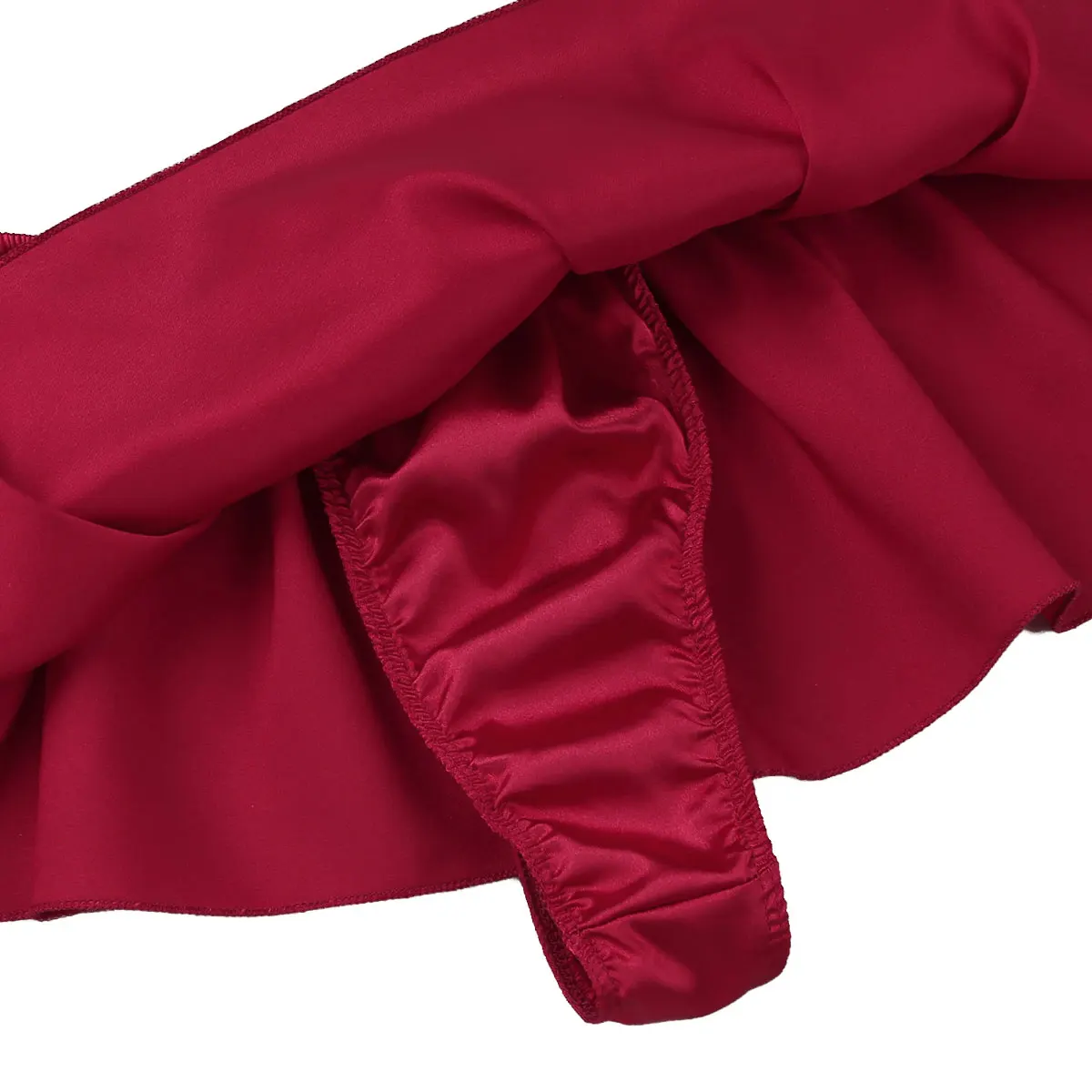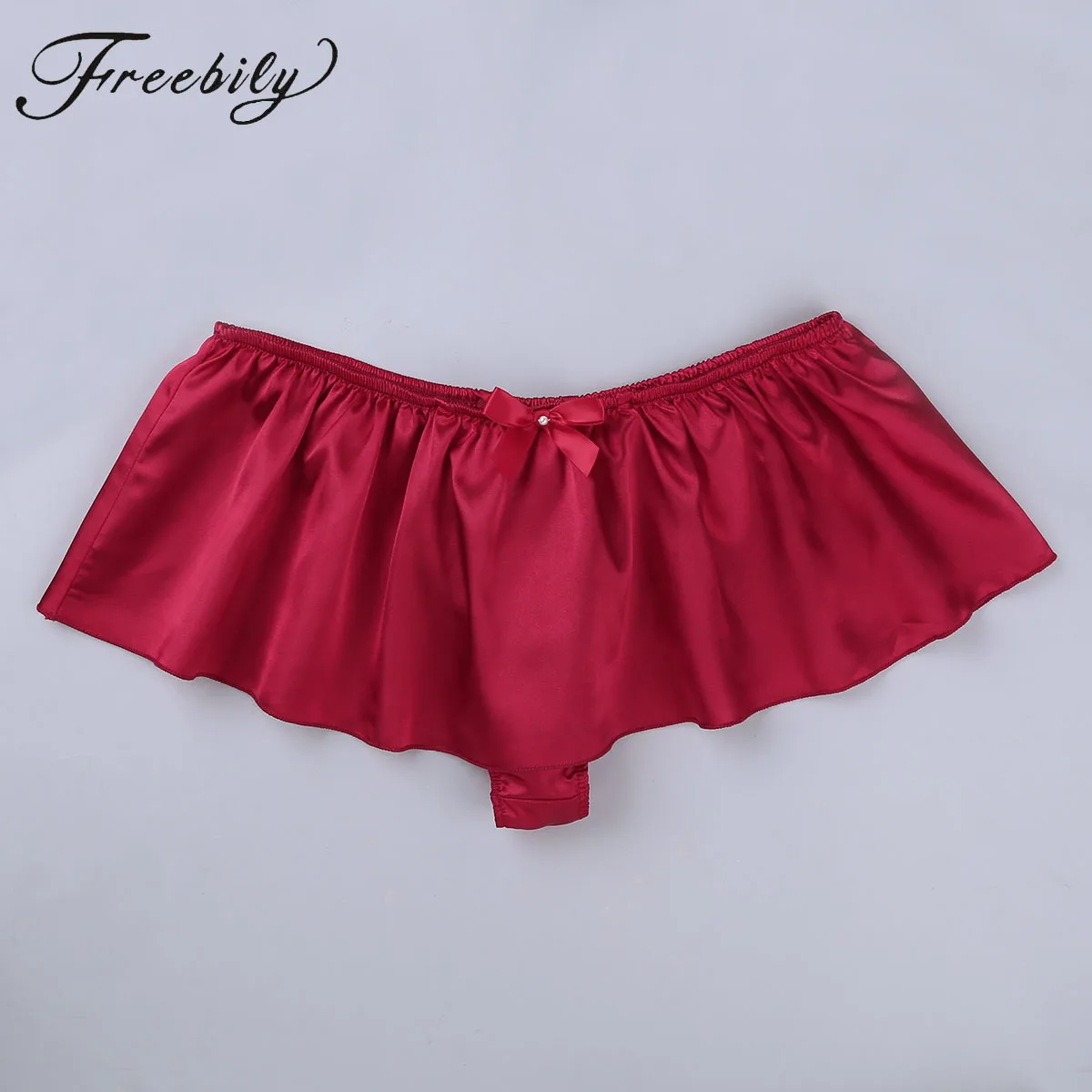 Мужские шелковые атласные трусики-танга, Трусы-стринги с оборками