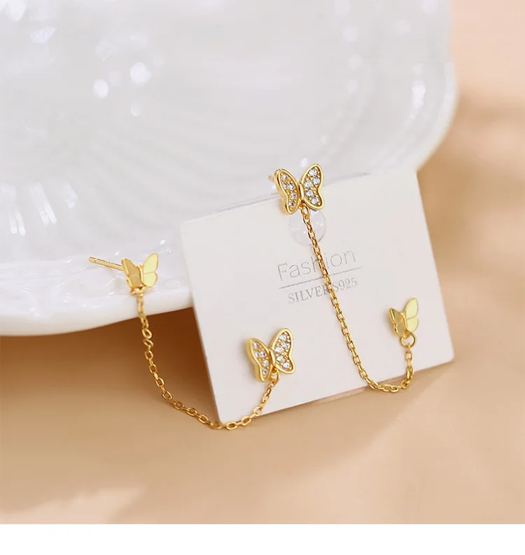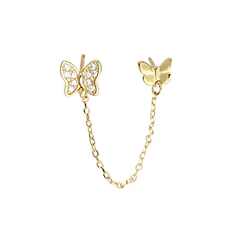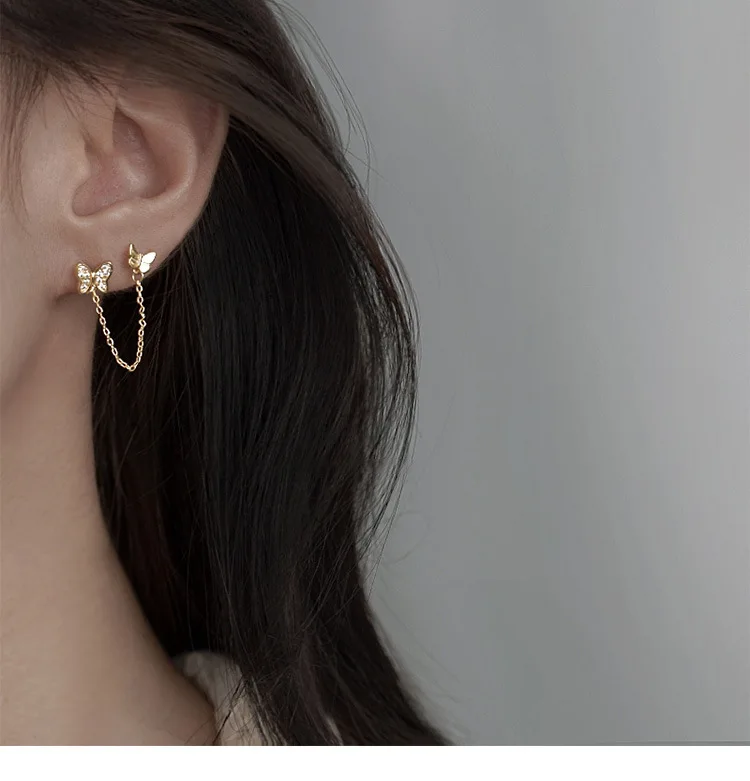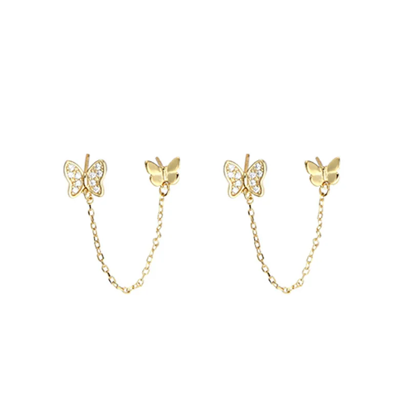 1 шт., два отверстия для пирсинга, Бабочка, шпильки, серьги, цепочка, кисточка, кристалл, циркон, простые богемные серьги, ювелирные изделия для свадебной вечеринки