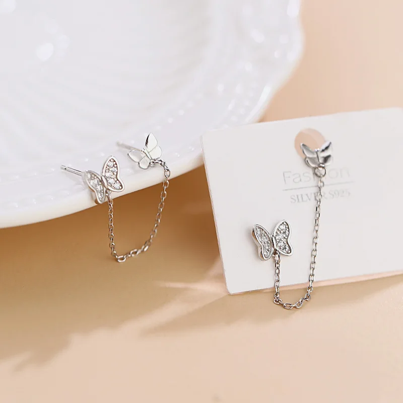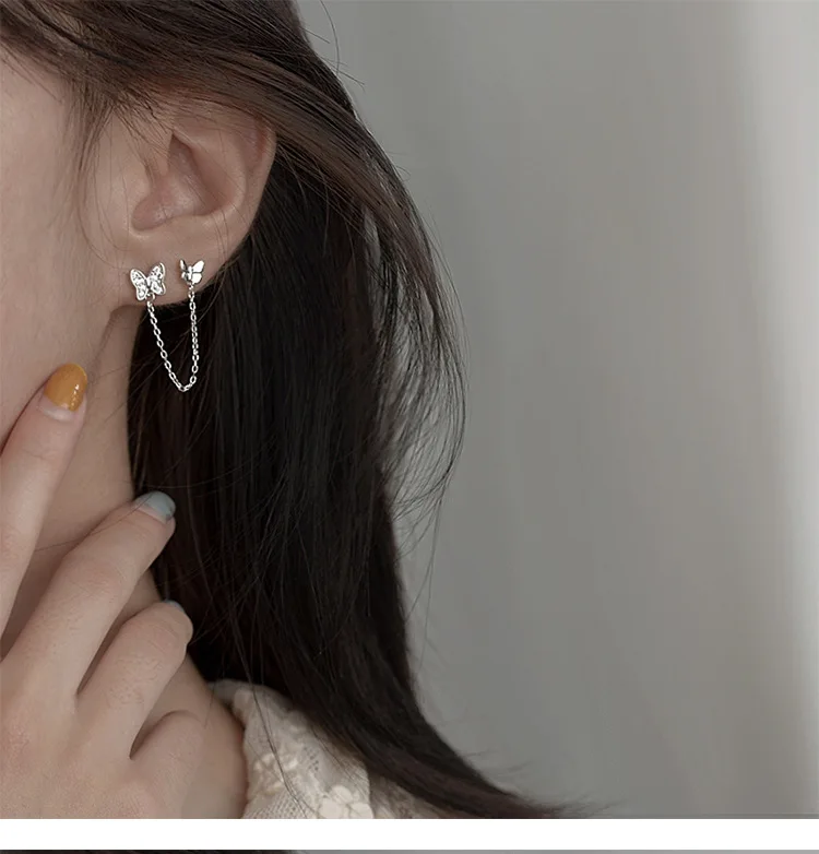 women two hole pierced earringsgirl butterfly studs earrings