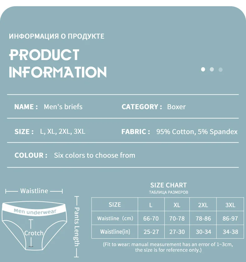 Трусы-брифы мужские эластичные, одноцветное нижнее белье хлопок, ни...