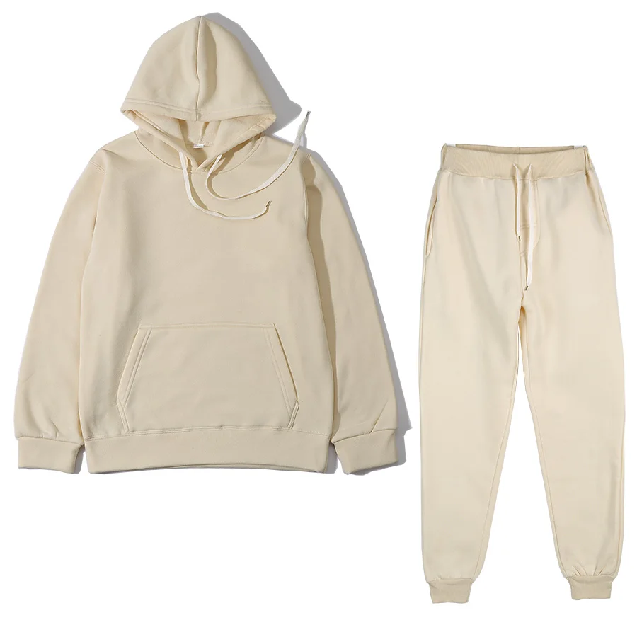Женский спортивный костюм из двух предметов, однотонный флисовый спортивный костюм с капюшоном и брюки-джоггеры, повседневная спортивная одежда оверсайз, Осень-зима 2021