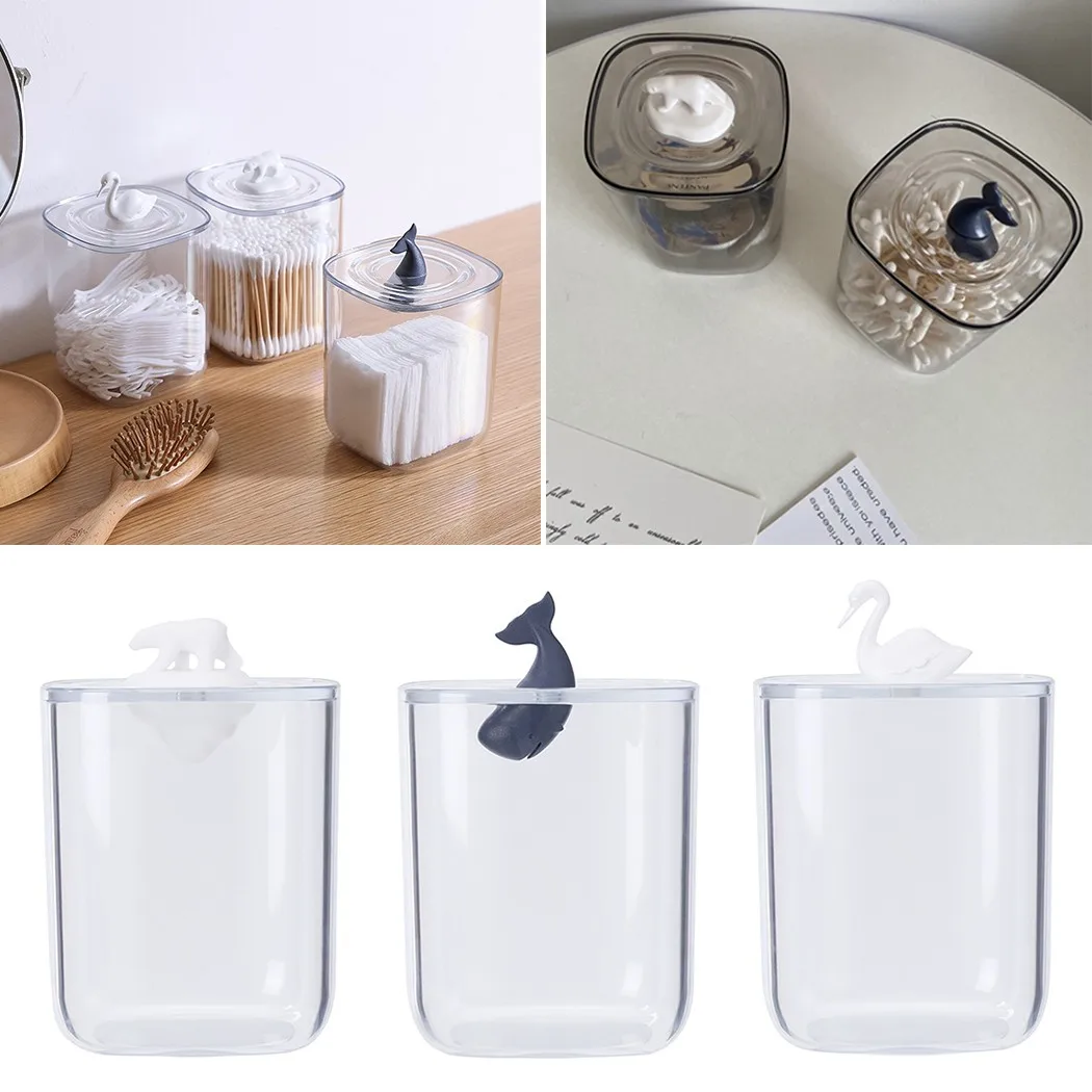 Милый полярный медведь, Кит, креативный мини-пластиковый ватный тампон, домашний пыленепроницаемый Настольный органайзер, коробка для хранения косметики и хлопка