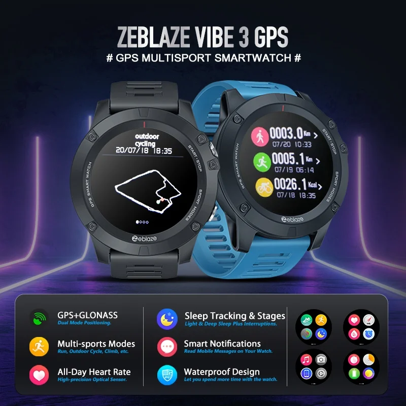 Смарт-часы Zeblaze VIBE 3 с GPS, пульсометром, фитнес-трекером, несколькими спортивными режимами, водонепроницаемые спортивные часы с GPS для AndroidIOS