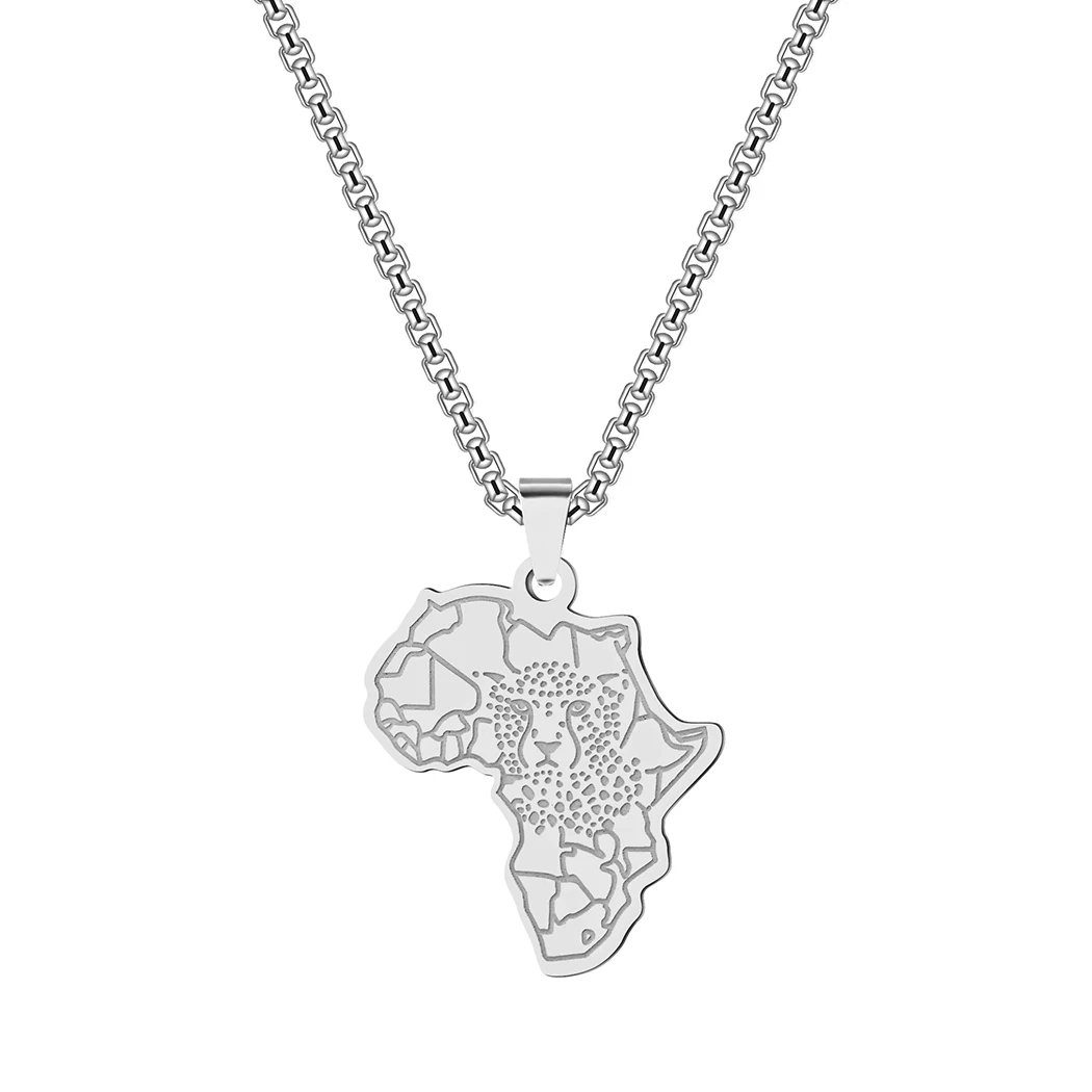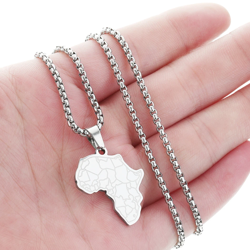 Ожерелье для мужчин и женщин, Серебряное колье из нержавеющей стали в стиле хип-хоп, Алжир, Конго, Карта Африки