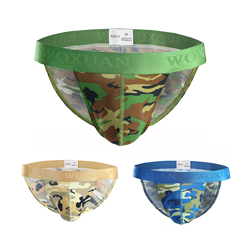 Мужские камуфляжные трусы, темно-синие дышащие трусы слипы, сексуал...