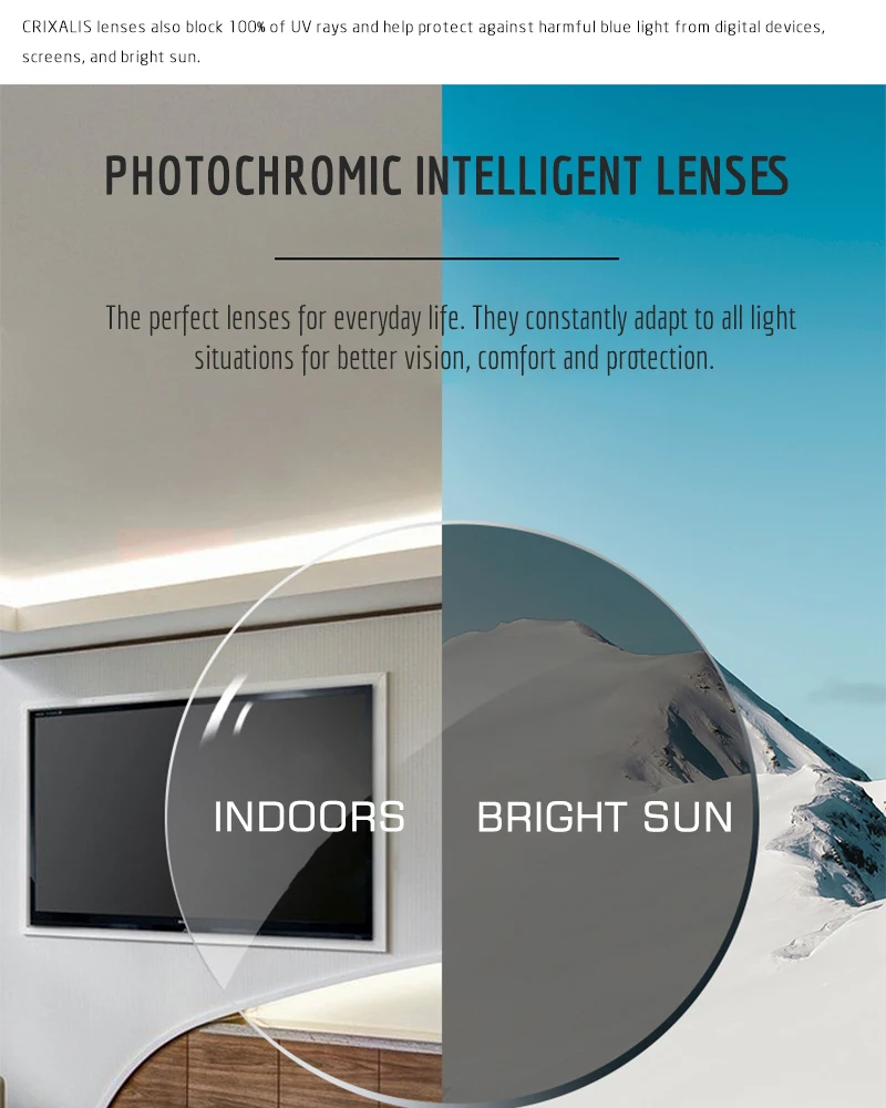 Линзы фотохромные CRIXALIS, 1,56, 1,61, 1,67, асферические стекла, с защитой от синего светильник, для близорукости, дальнозоркости, пресбиопии, UV400