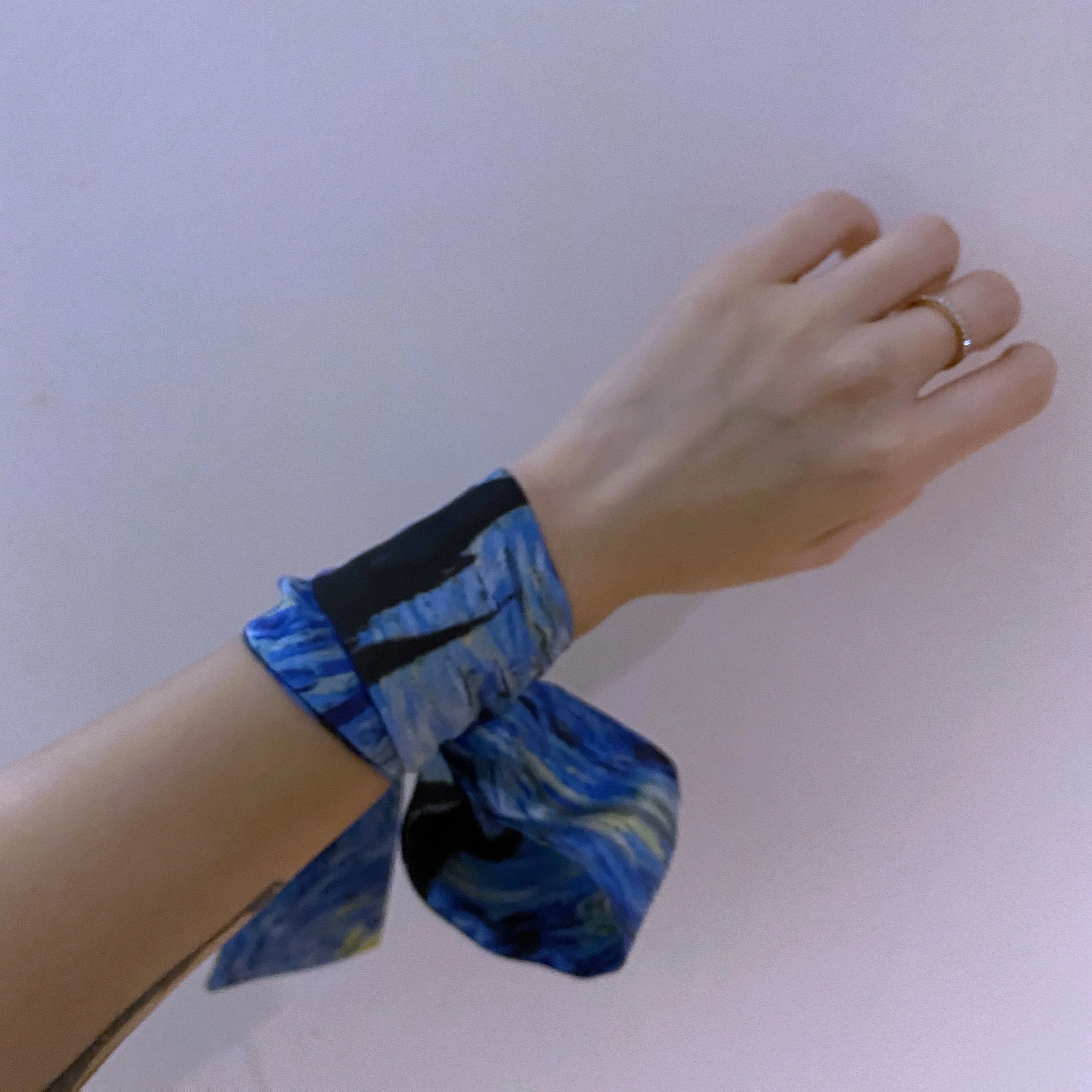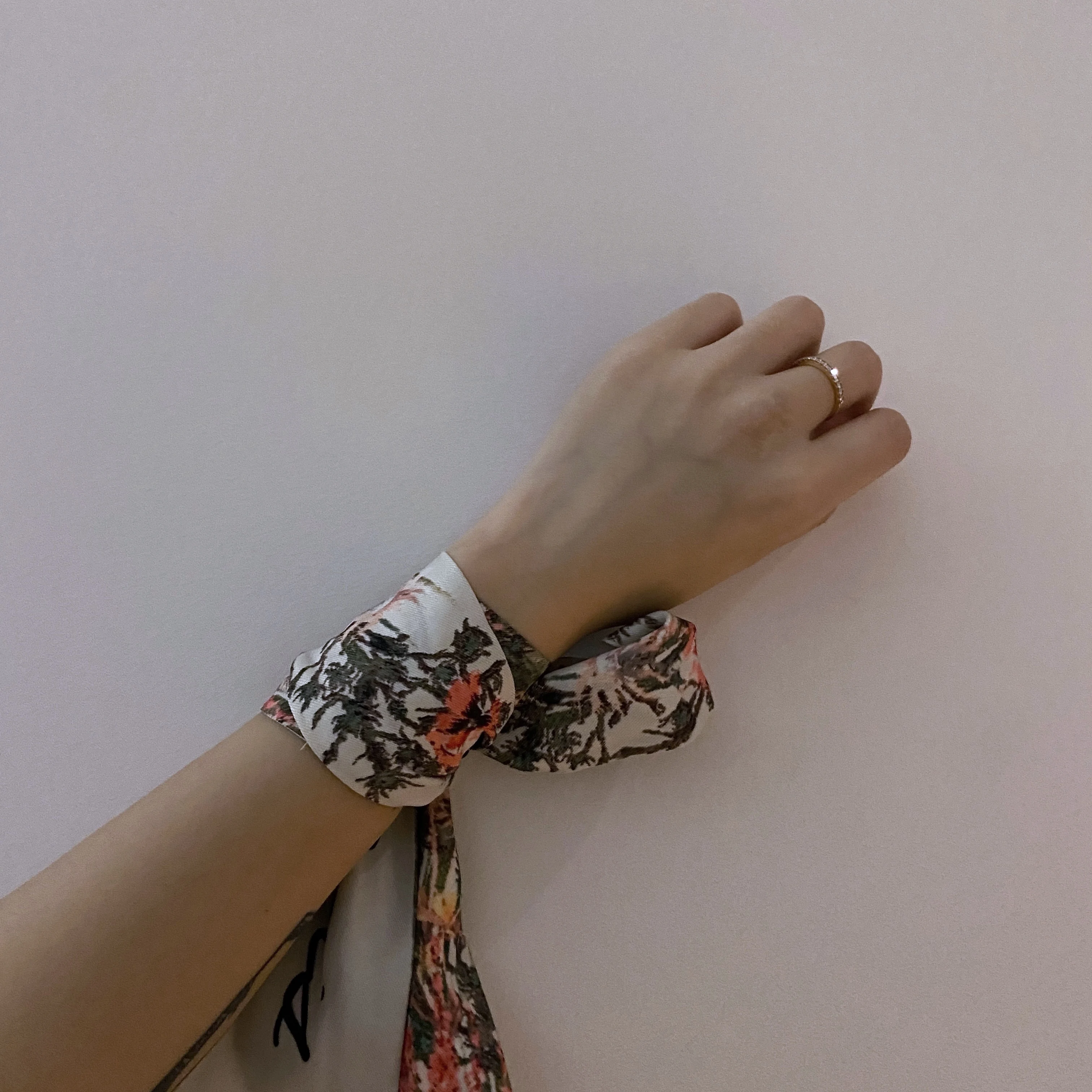 Материал: полиэстер, вискоза. Завязанная сумка с ручкой, ремешок на запястье, украшение одежды