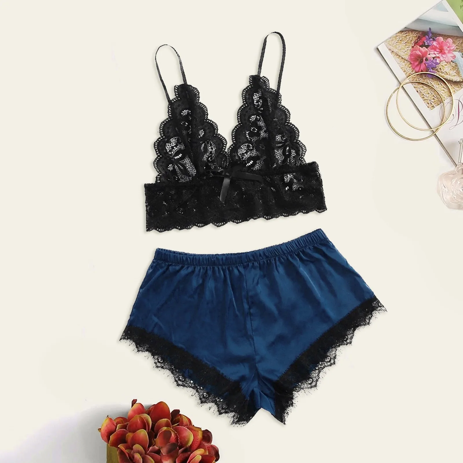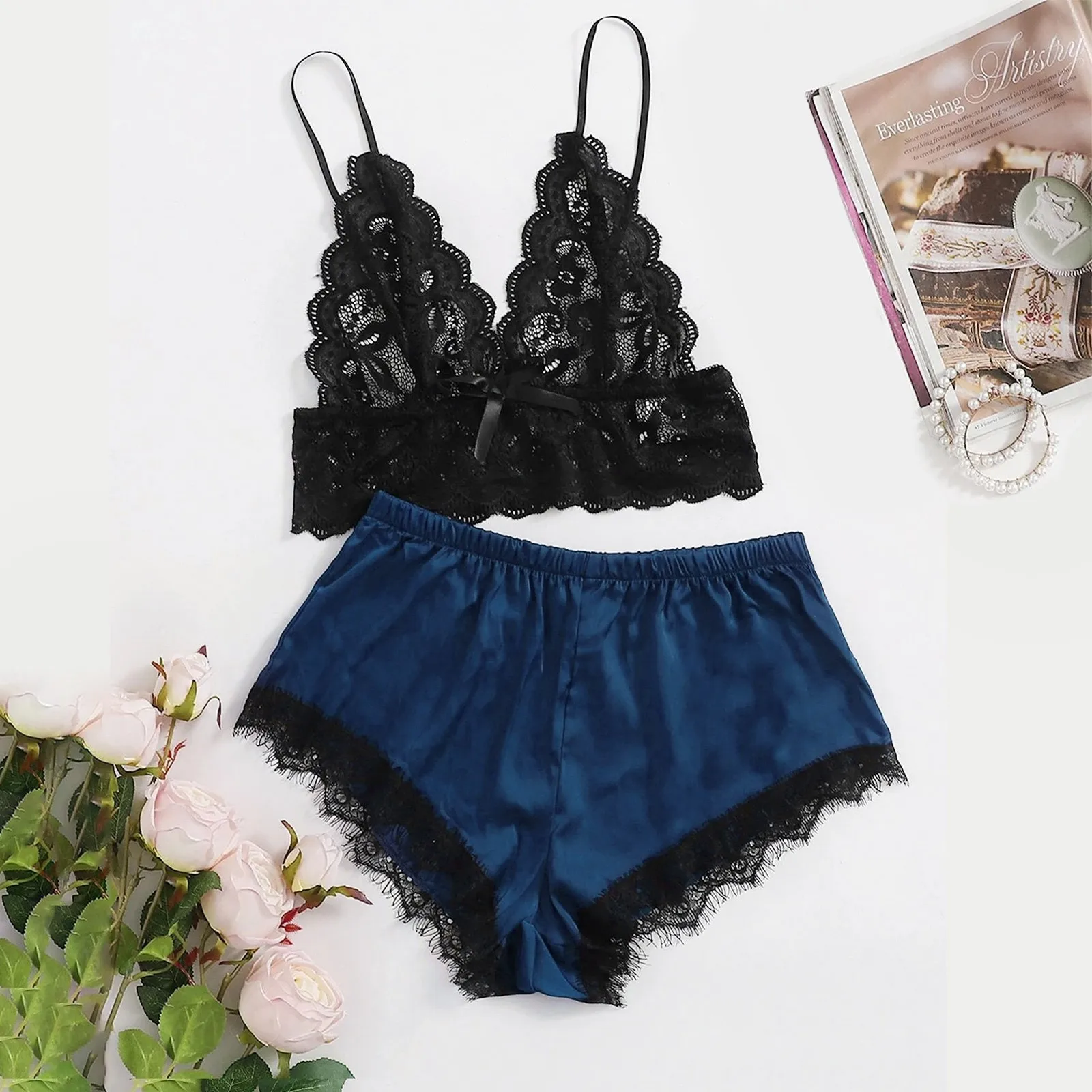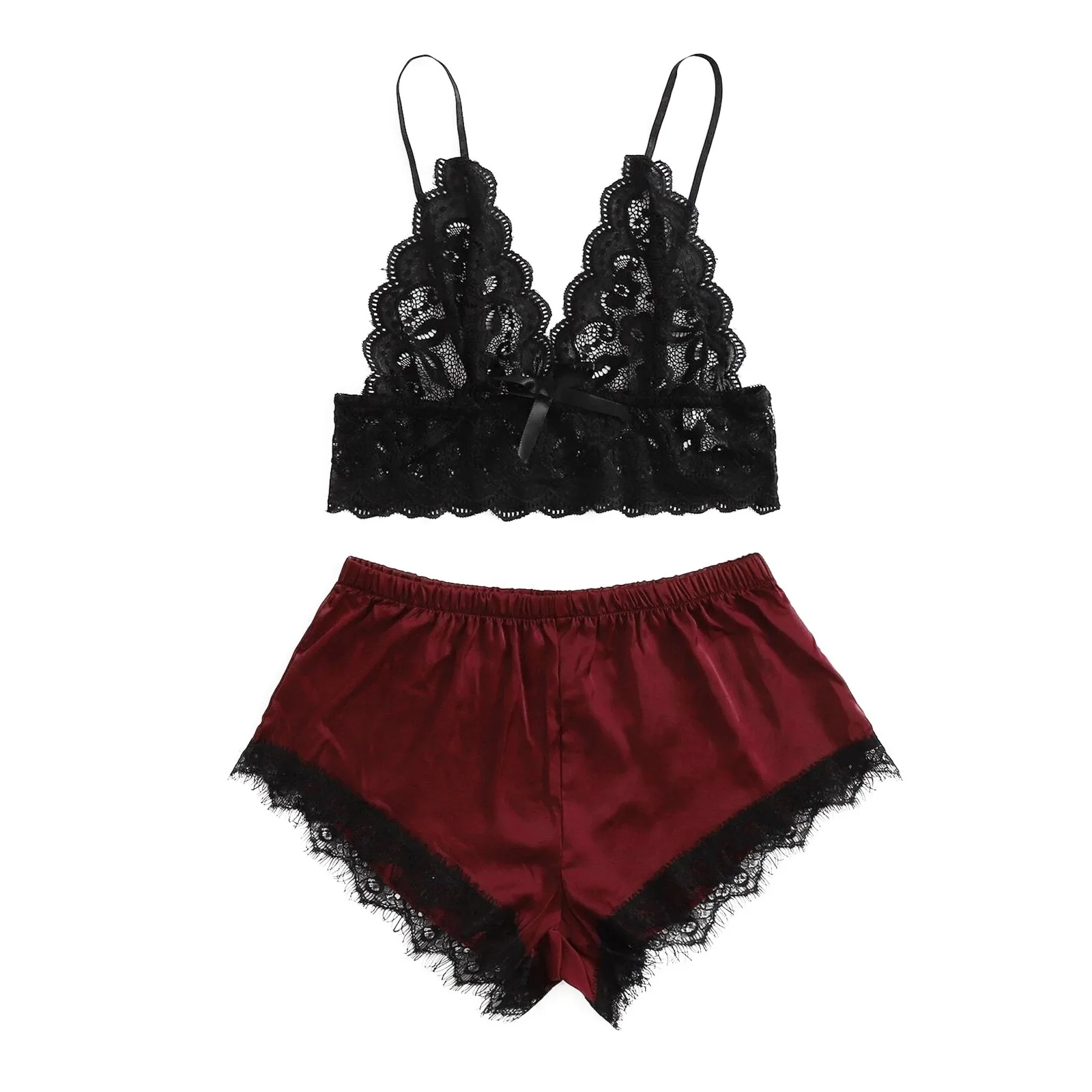 Новое сексуальное кружевное белье шелковое нижнее белье пижамы Нижнее белье атласные пижамы