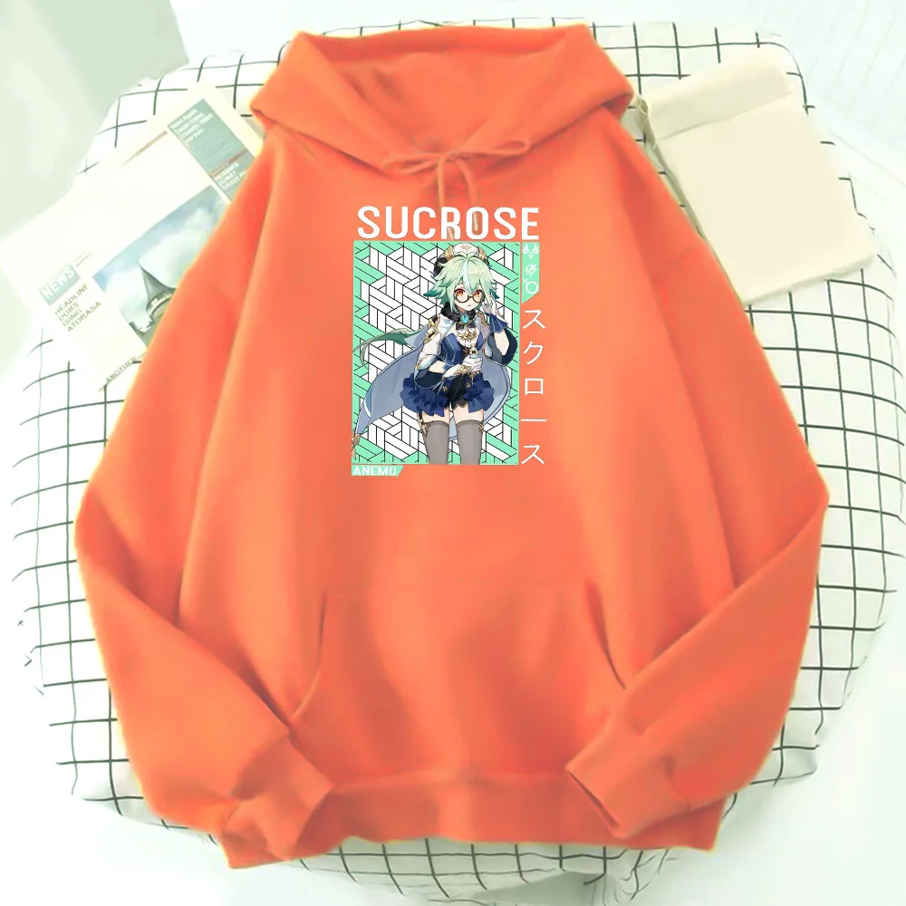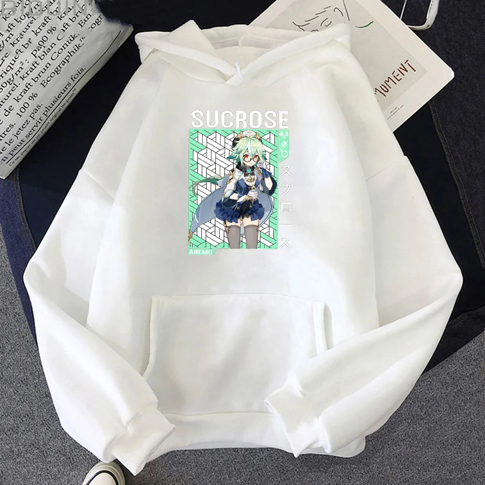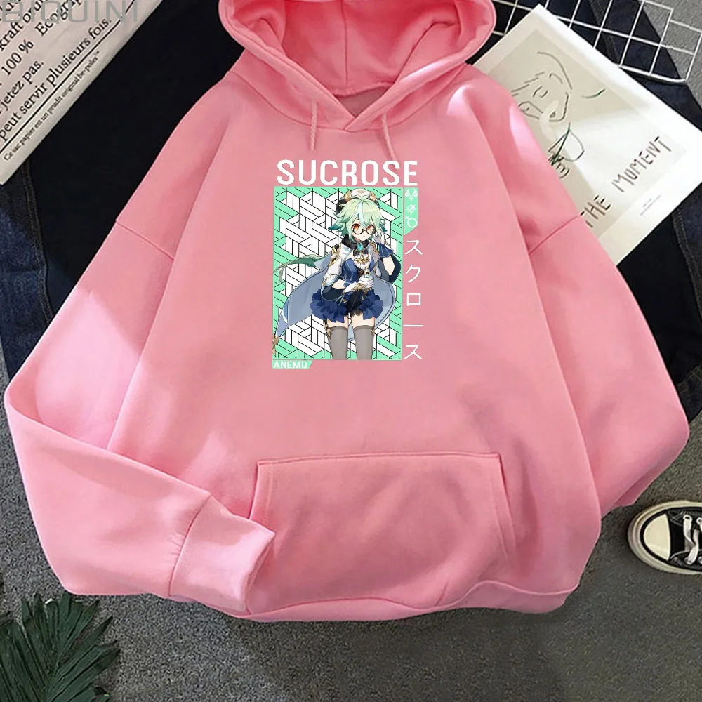 Толстовка с капюшоном в стиле аниме, оверсайз, уличная одежда Genshin Impact suкреза, Женский свитшот, пуловер черного цвета, кавайная повседневная одежда в стиле Харадзюку