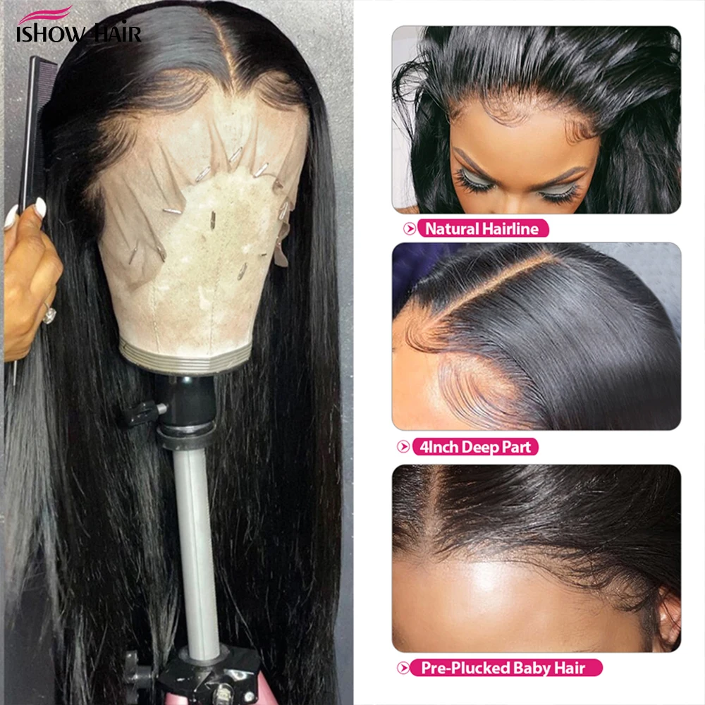 Ishow парики для женщин, человеческие волосы, Прозрачная Кружевная прямая кружевная Передняя парик, предварительно выщипанный 13x4 фронтальный парик, парик 4x4