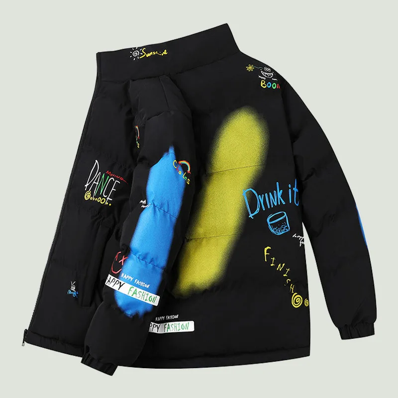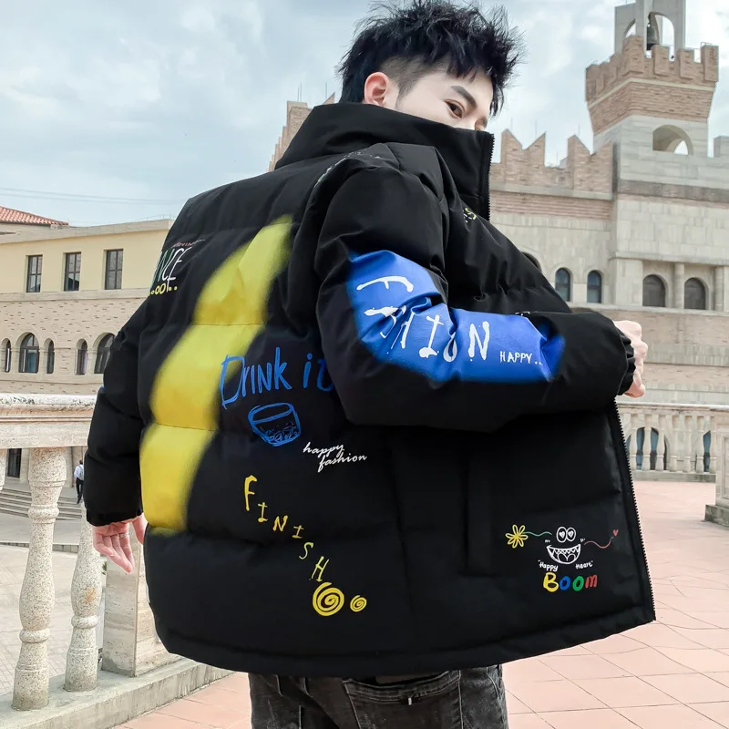 Мужская Утепленная двухсторонняя парка в стиле хип-хоп с принтом гр...